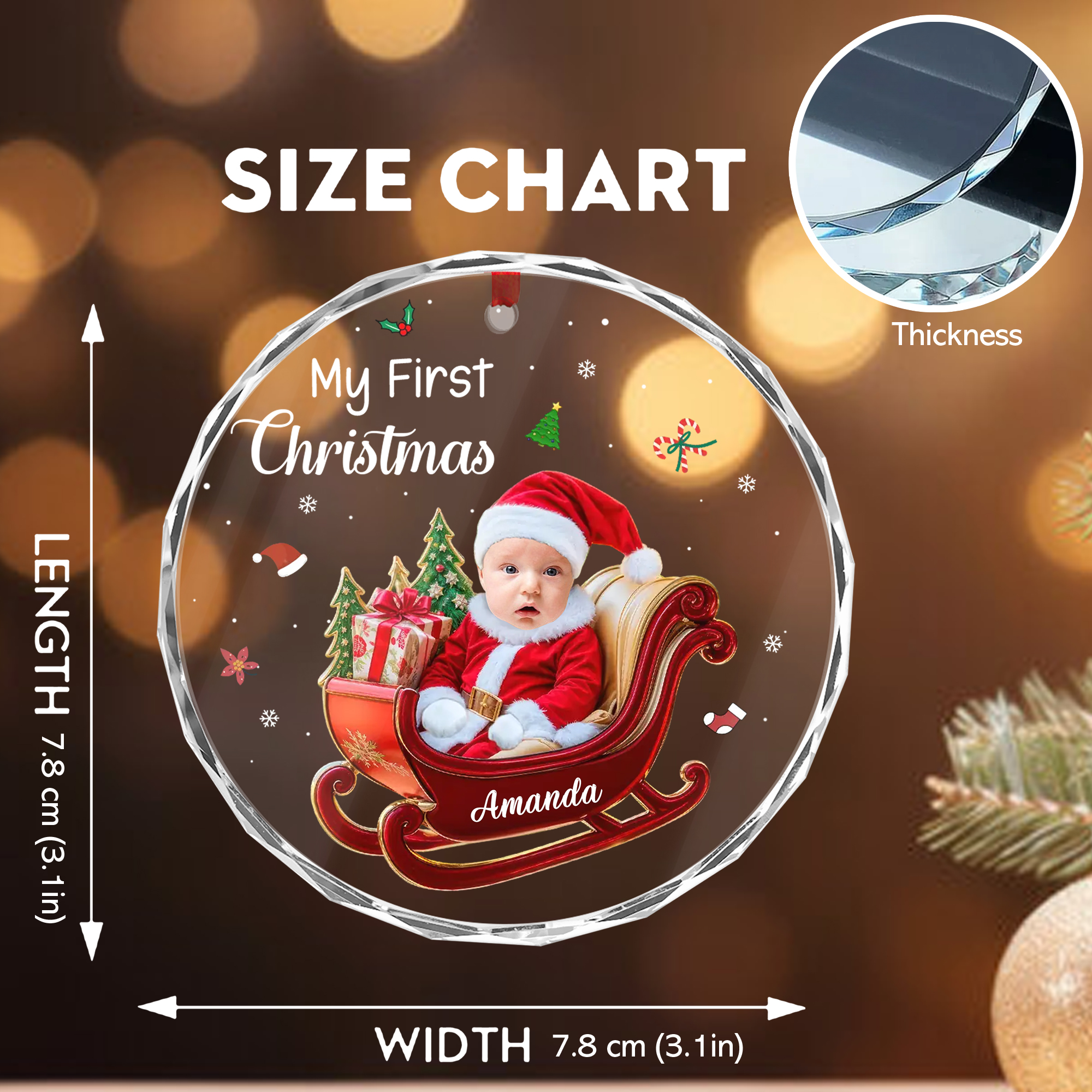 Personalized Babys First Christmas Ornament Custom Photo Name Keepsake Faceted Glass Gift for New Parents-GLO-IV4GC