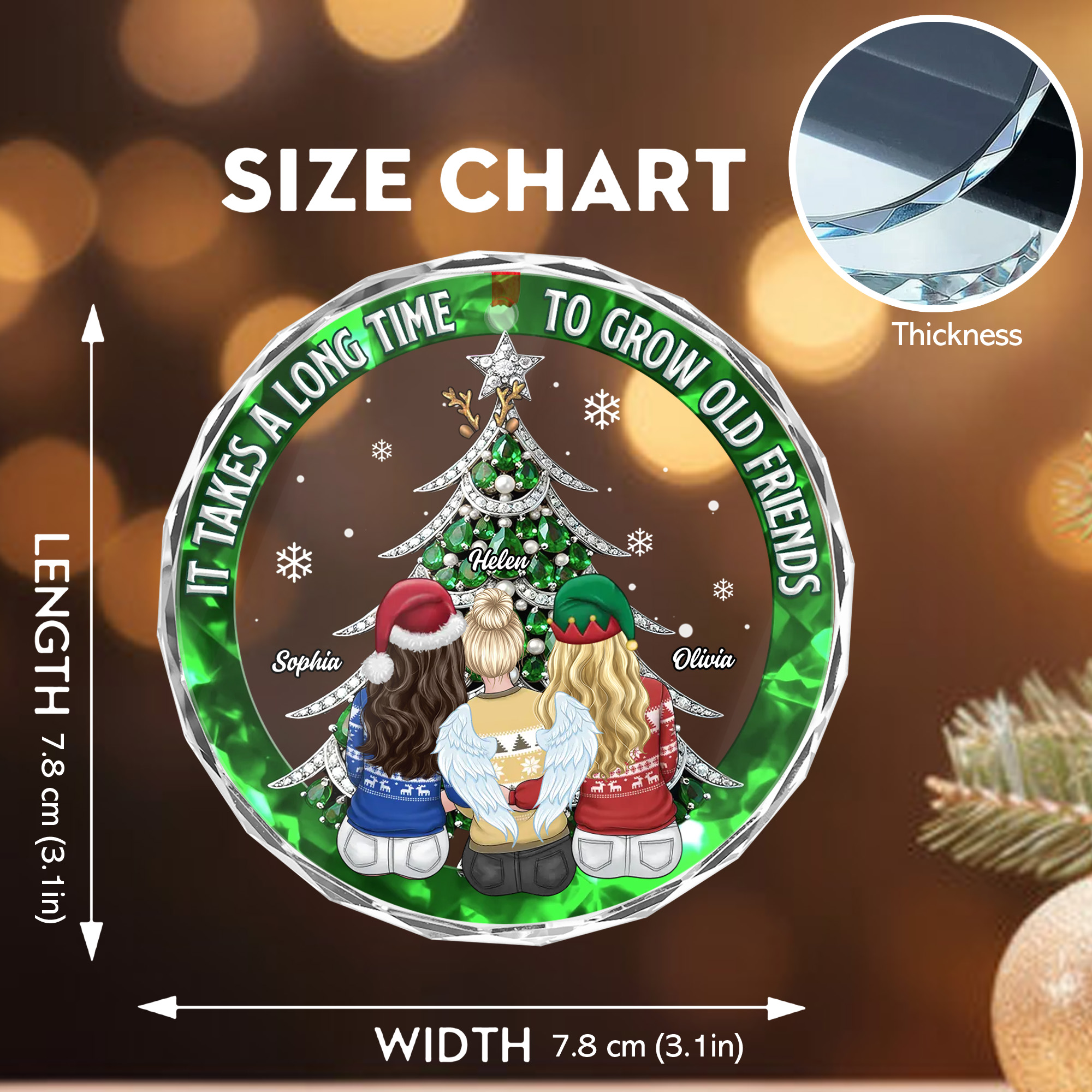 Personalized Best Friends Christmas Glass Ornament Custom Old Friends Keepsake for Besties-GLO-IXCVA