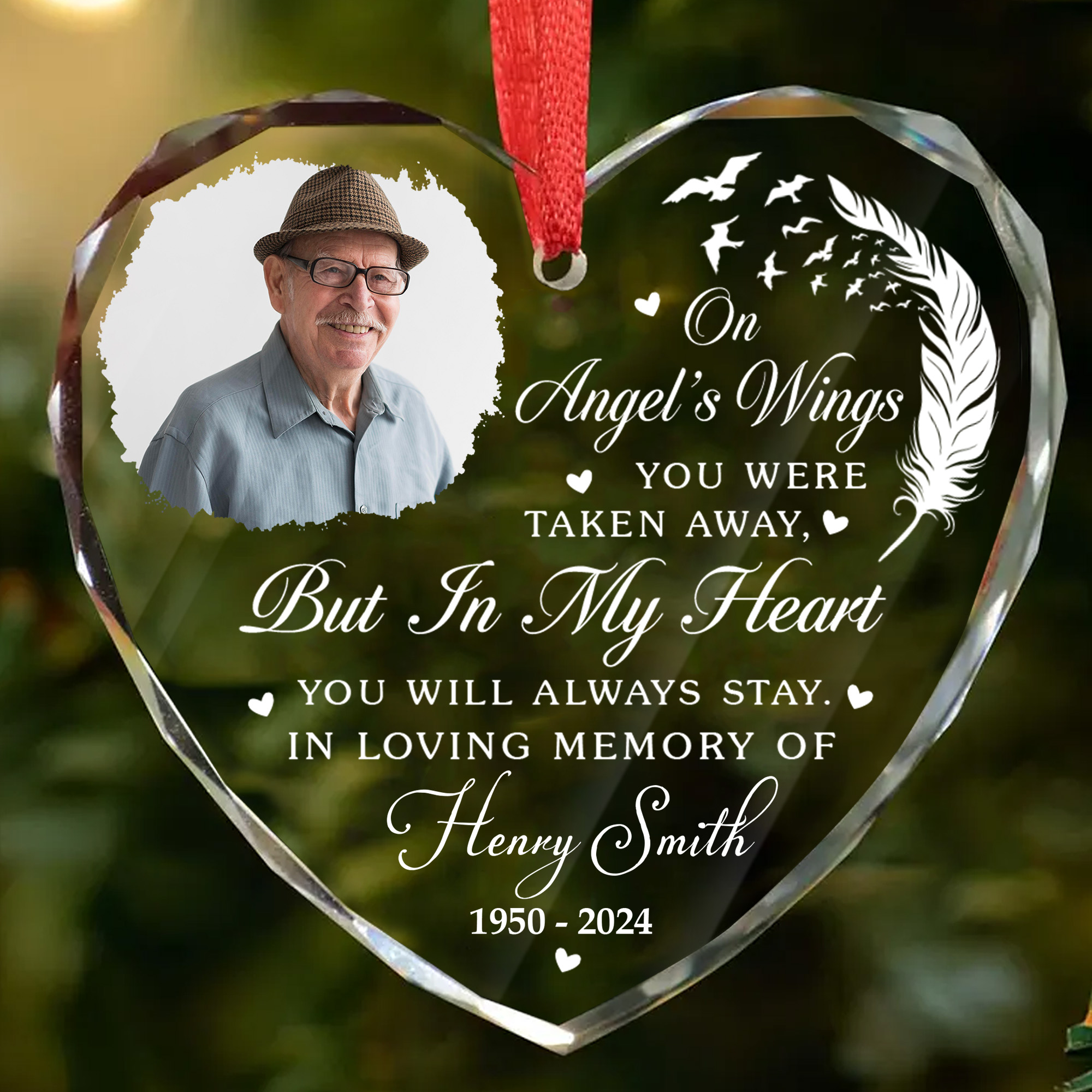 Personalized Memorial Heart Glass Ornament Custom Photo Name Keepsake for Loved Ones-GLO-XAGCY