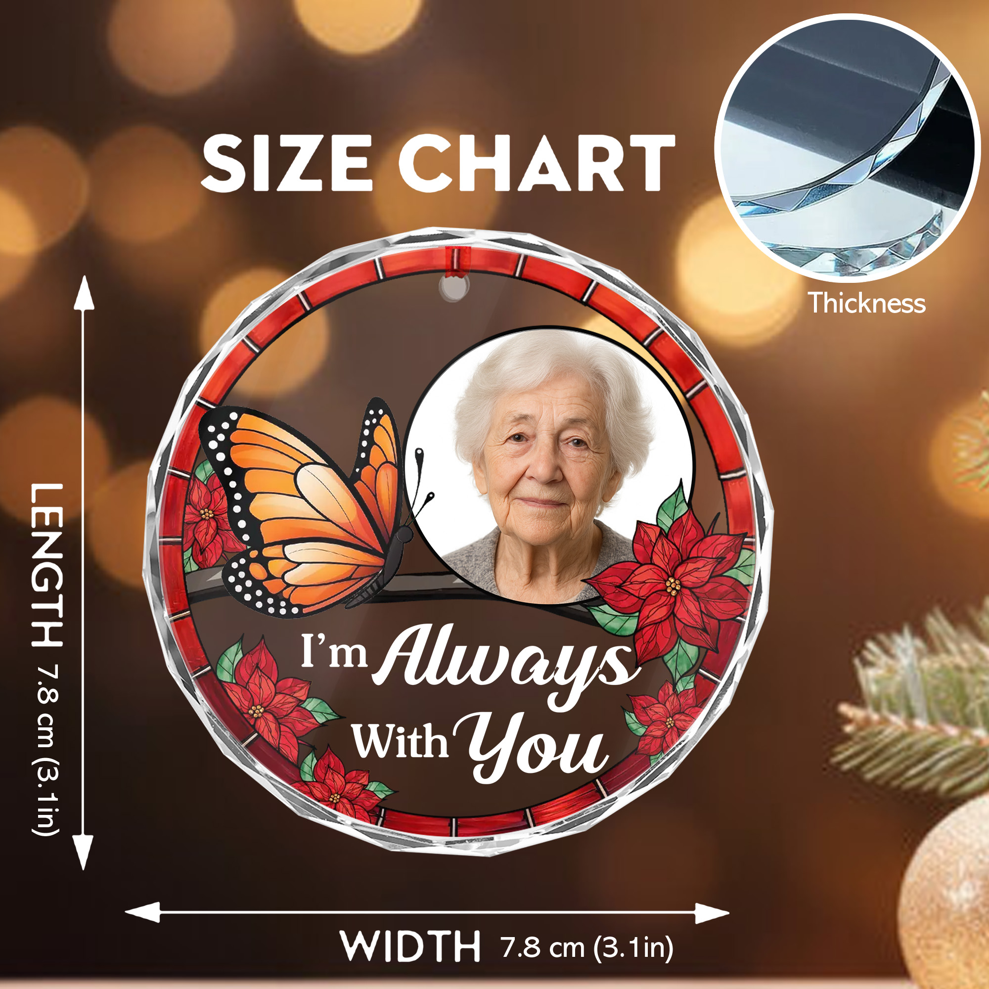 Personalized Memorial Butterfly Glass Ornament Custom Photo Always With You Keepsake for Loss-GLO-UVEJ1