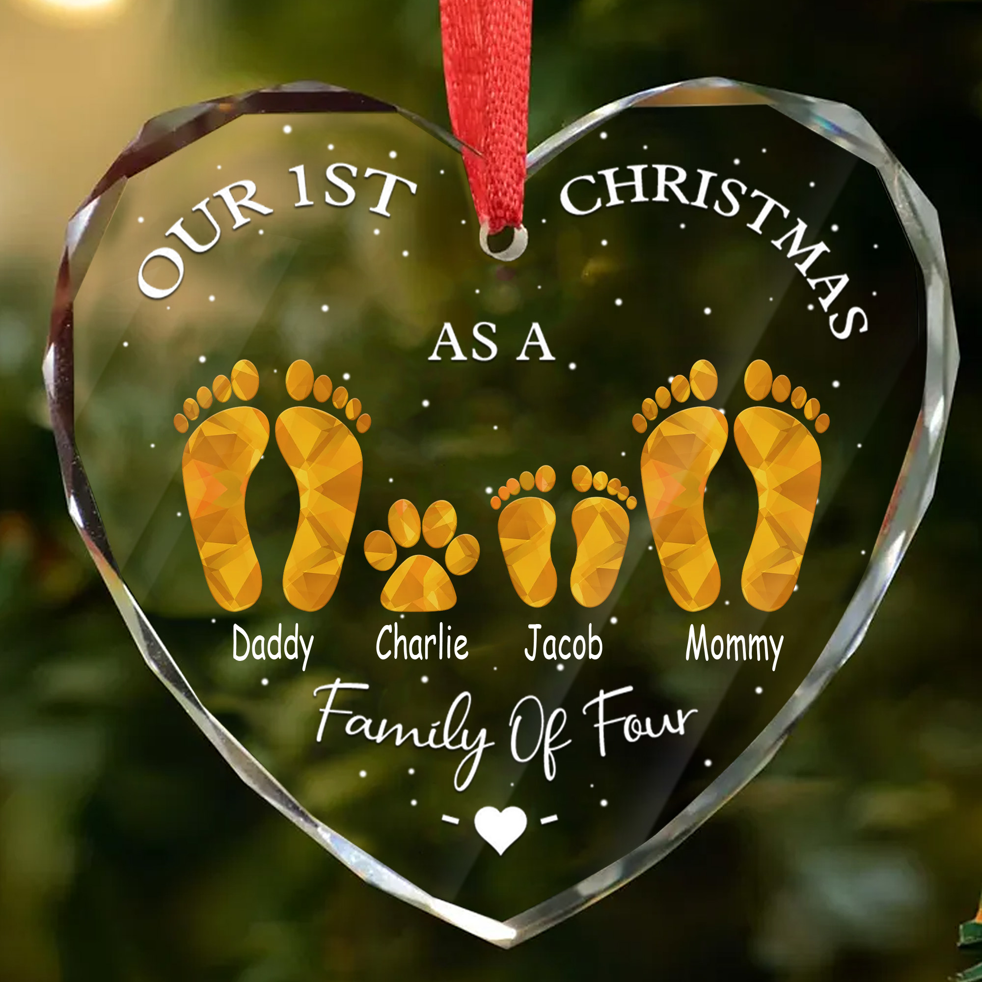 Personalized New Family Ornament with Pet Faceted Glass Heart 1st Christmas Gift for New Parents 2025-HGLO-OB66R