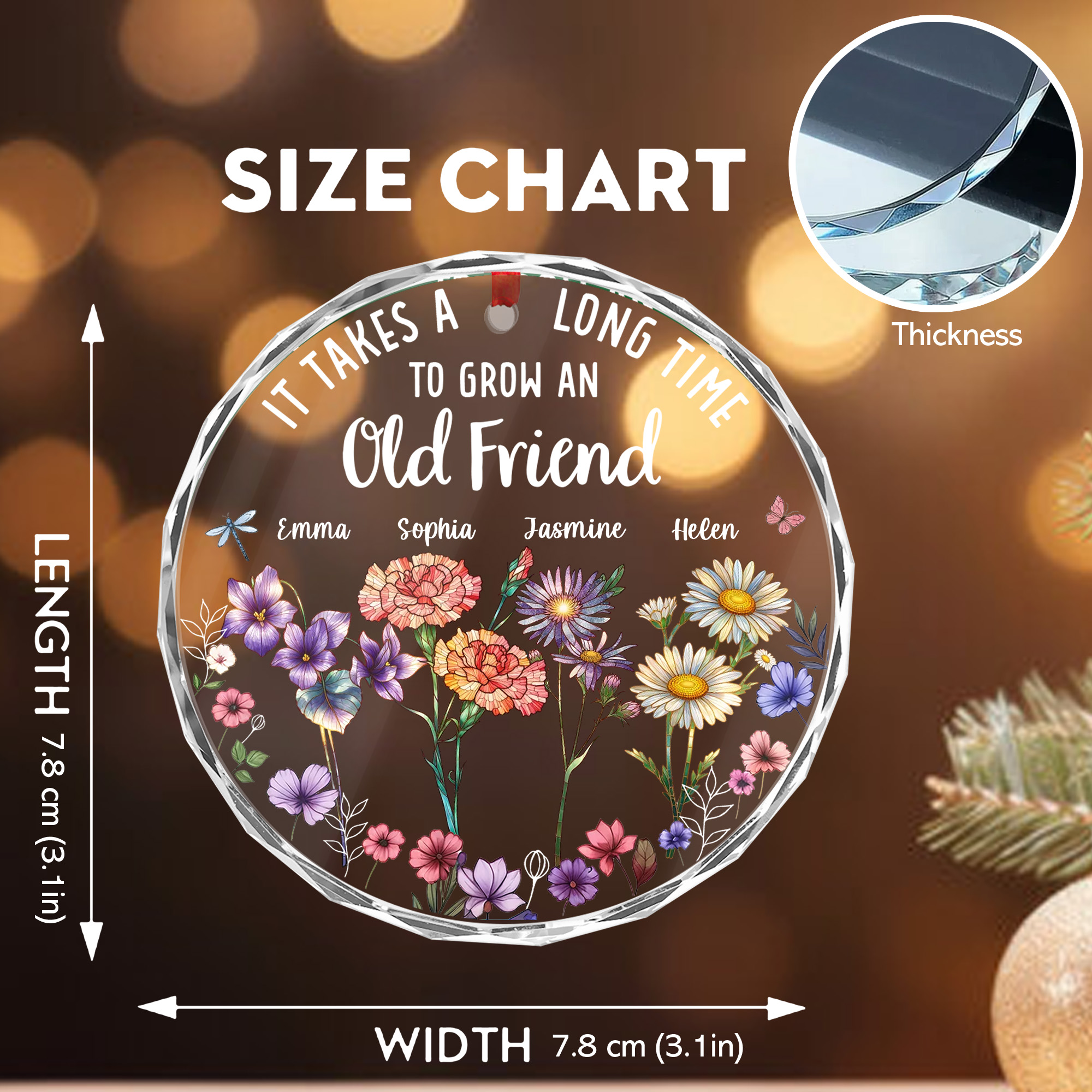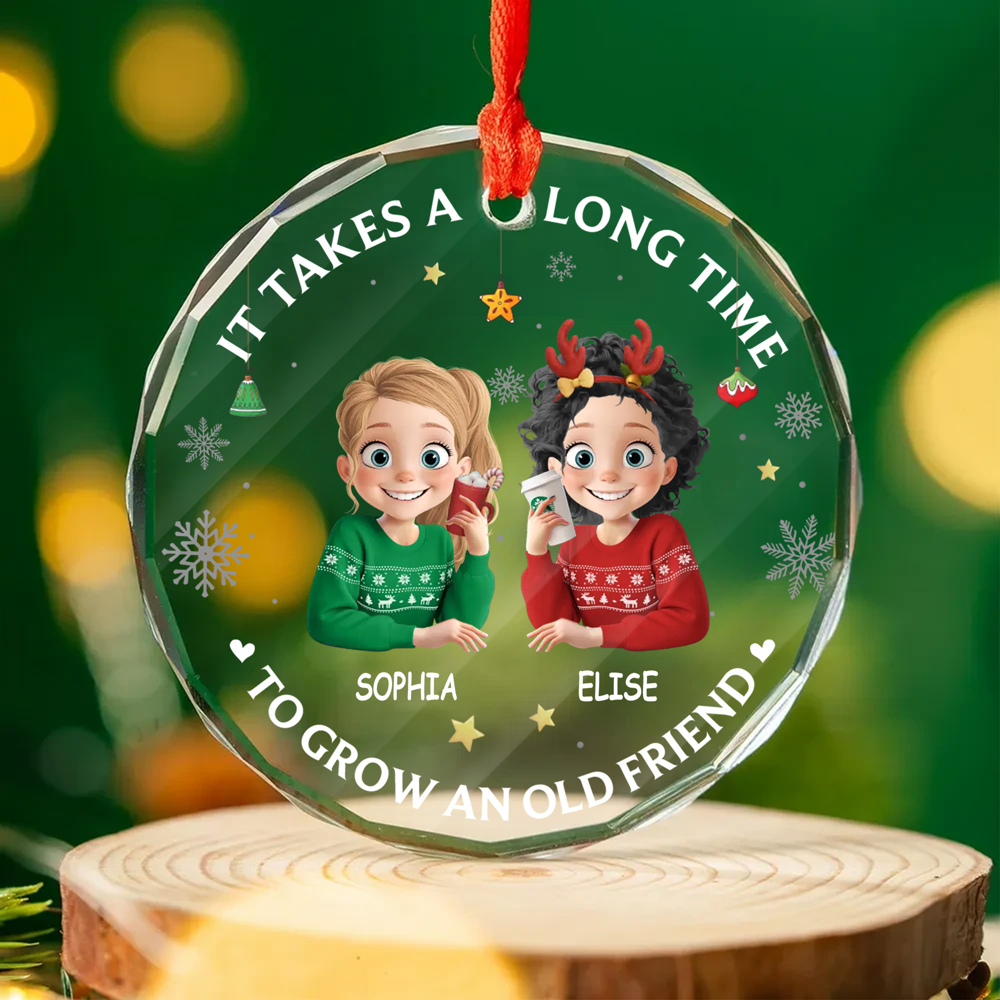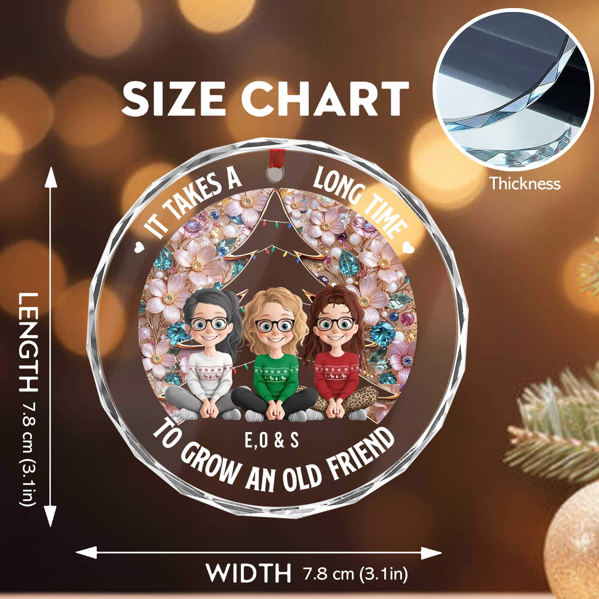 Personalized Old Friend Ornament with Names Faceted Glass Christmas Gift for Besties Sisters 2025-GLO-UP2TC
