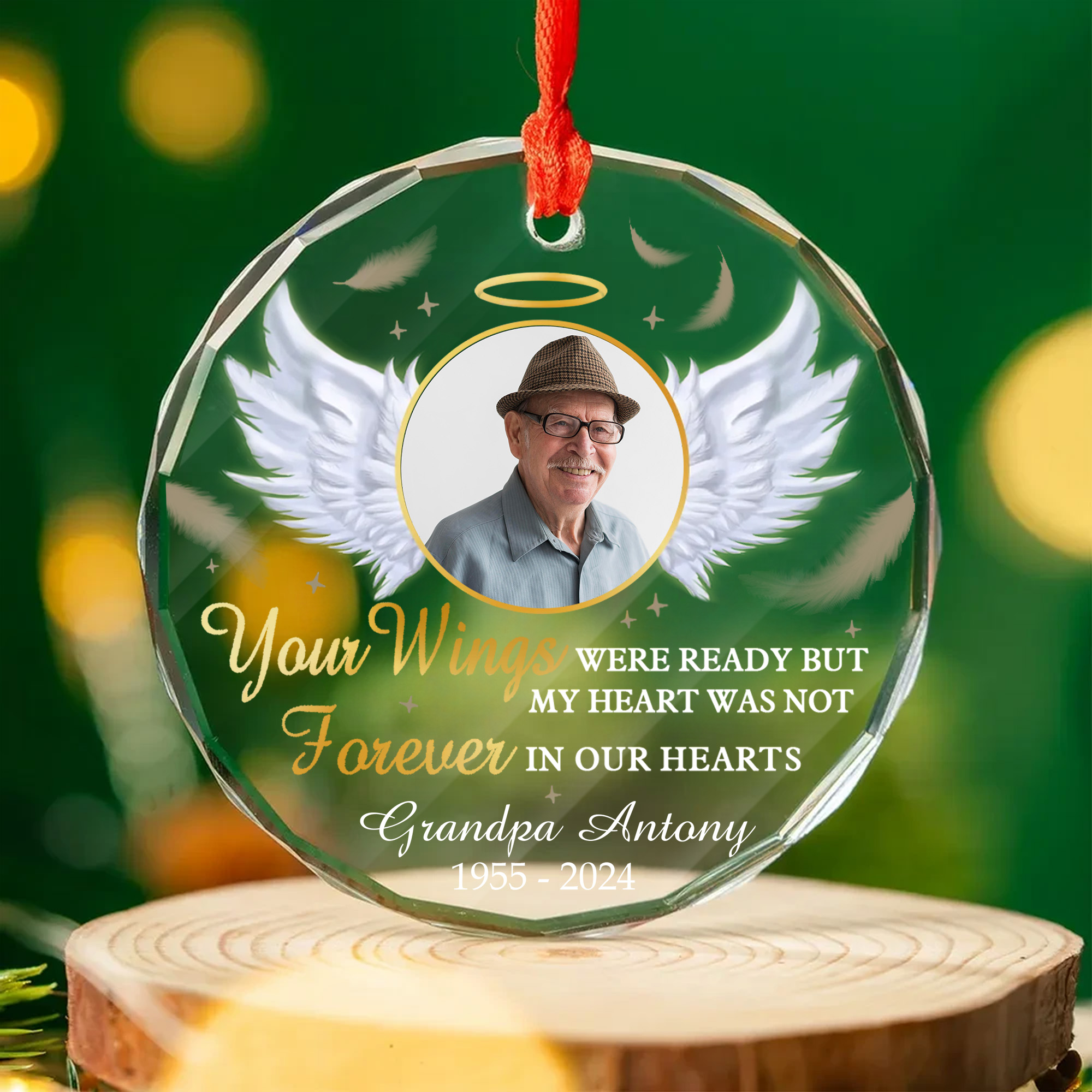 Personalized Memorial Photo Glass Ornament Custom Angel Wings Keepsake for Grandparent Loss-GLO-0YVA9