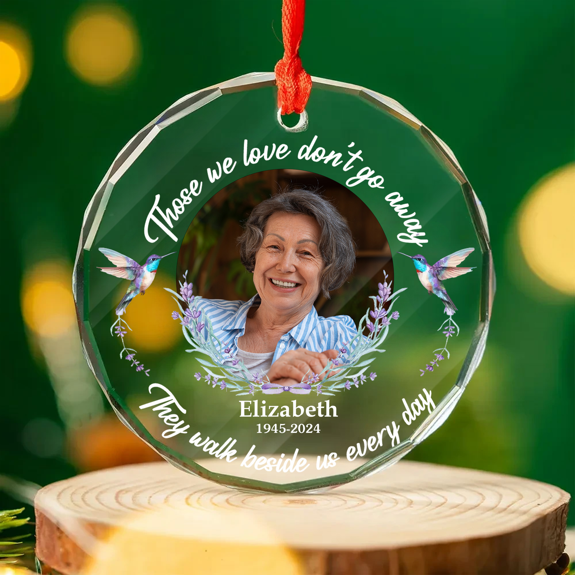 Personalized Memorial Hummingbird Glass Ornament Custom Photo Keepsake for Loved Ones-GLO-AZERD
