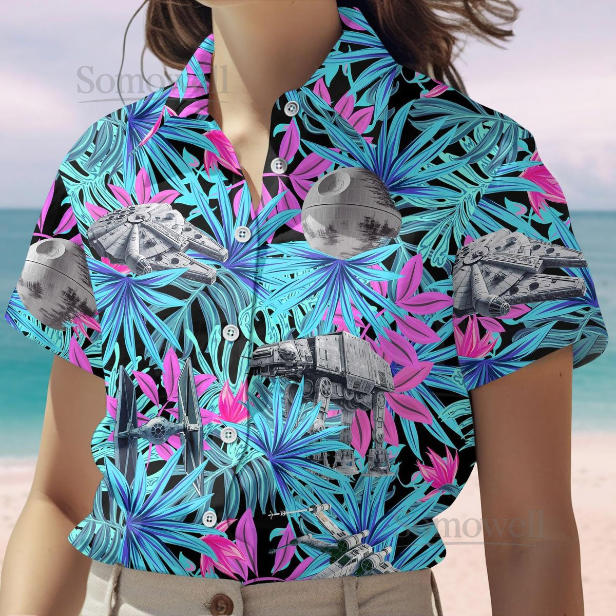 Spaceship Star Wars Button Shirt Space Battle Hawaiian Shirt Spacecraft Movie Shirt Disney Family Vacation Shirt Summer Hawaii Gift_12