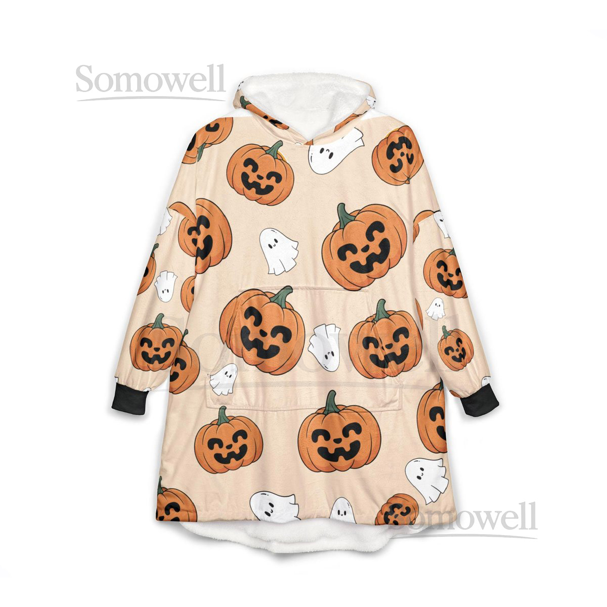 Cozy Halloween Hooded Blanket Pumpkin Ghost Snuggie for Fall Perfect for Halloween Home Decor Gift Idea_24