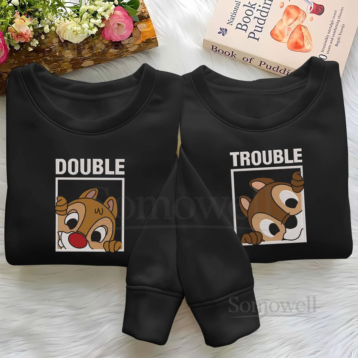 Chip And Dale Embroidered Sweatshirt Double Trouble Shirt Disney Couple Shirt Disney Family Shirt Matching Shirt Embroidery Hoodie_12