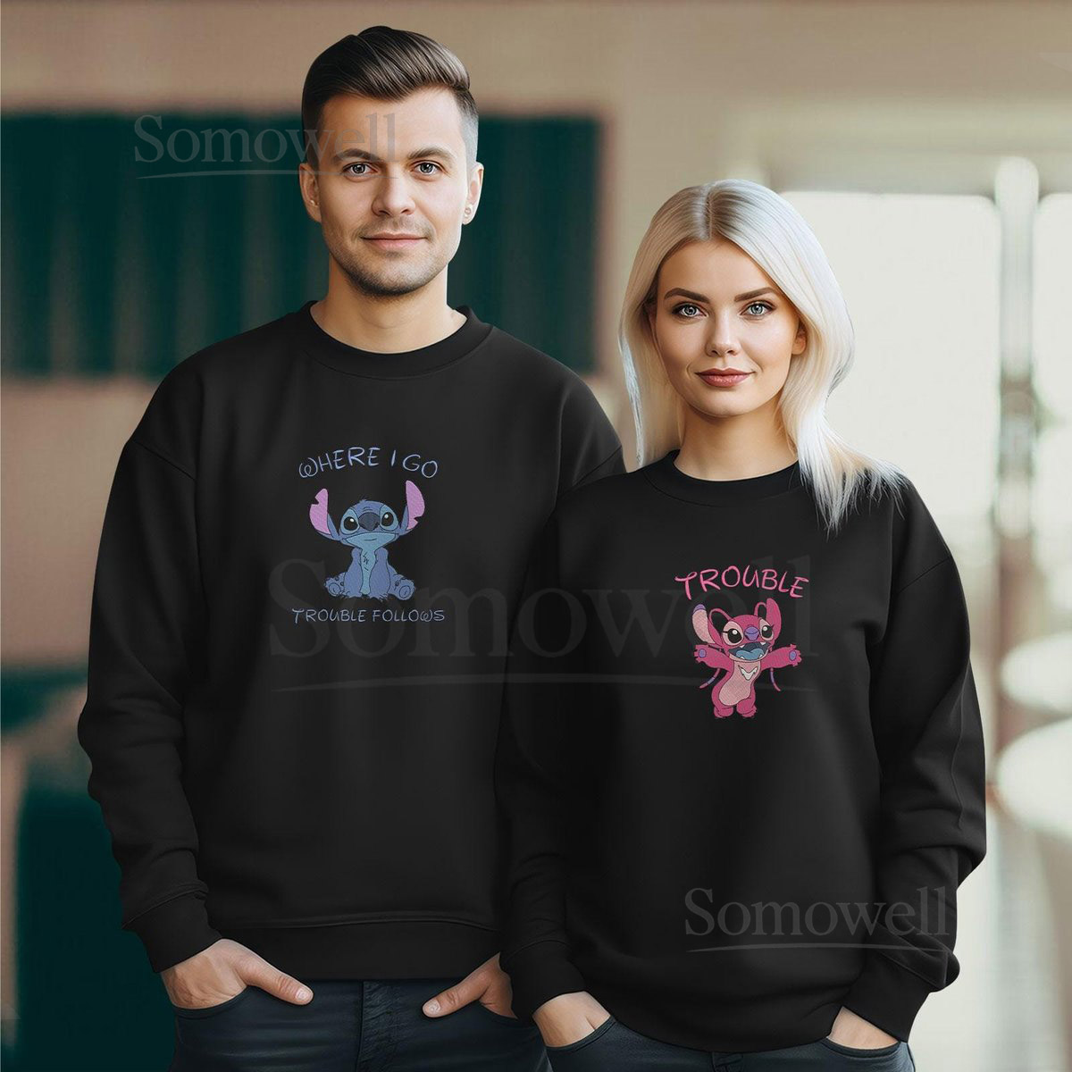 Stitch Angel Couple Embroidered Sweatshirt Lilo And Stitch Embroidery Hoodie Disney Cartoon Shirt For Women MenValentine Couple Gift_154