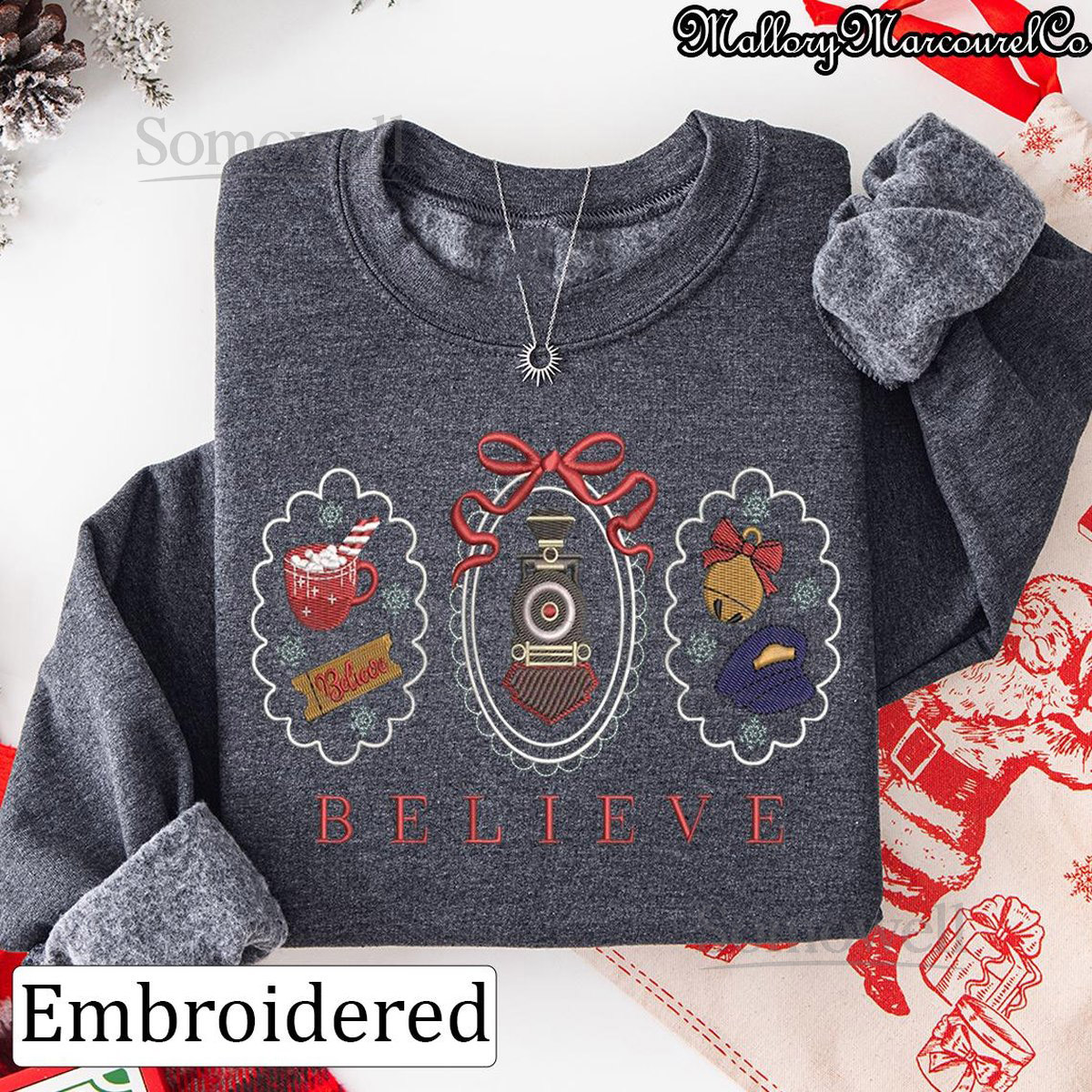 Embroidered Believe Christmas Sweatshirt Polar Express Embroidered Shirt Vintage Holiday Crewneck Merry Christmas Family Vacation Gift_58