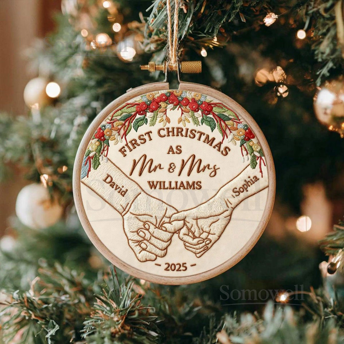 Personalized First Christmas As Mr Mrs Embroidery Hoop Ornament Couple Ornament Christmas Tree Hanging Newly Wed Gift Couple Gifts_138
