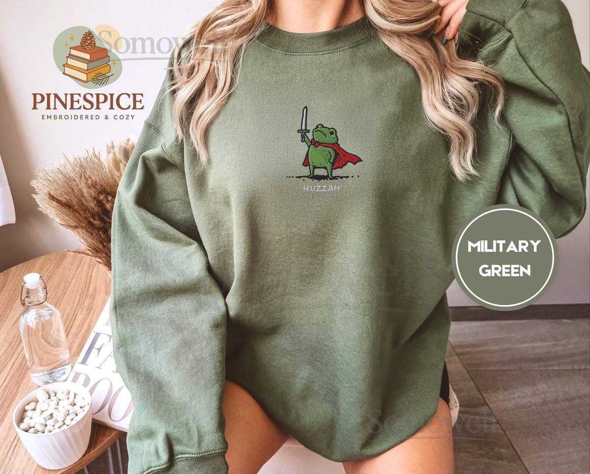 Huzzah Frog Sweatshirt Embroidered Gildan 18000 Funny DnD Pullover Renaissance Faire Frog Crewneck Medieval Fantasy Gamer Gift_109