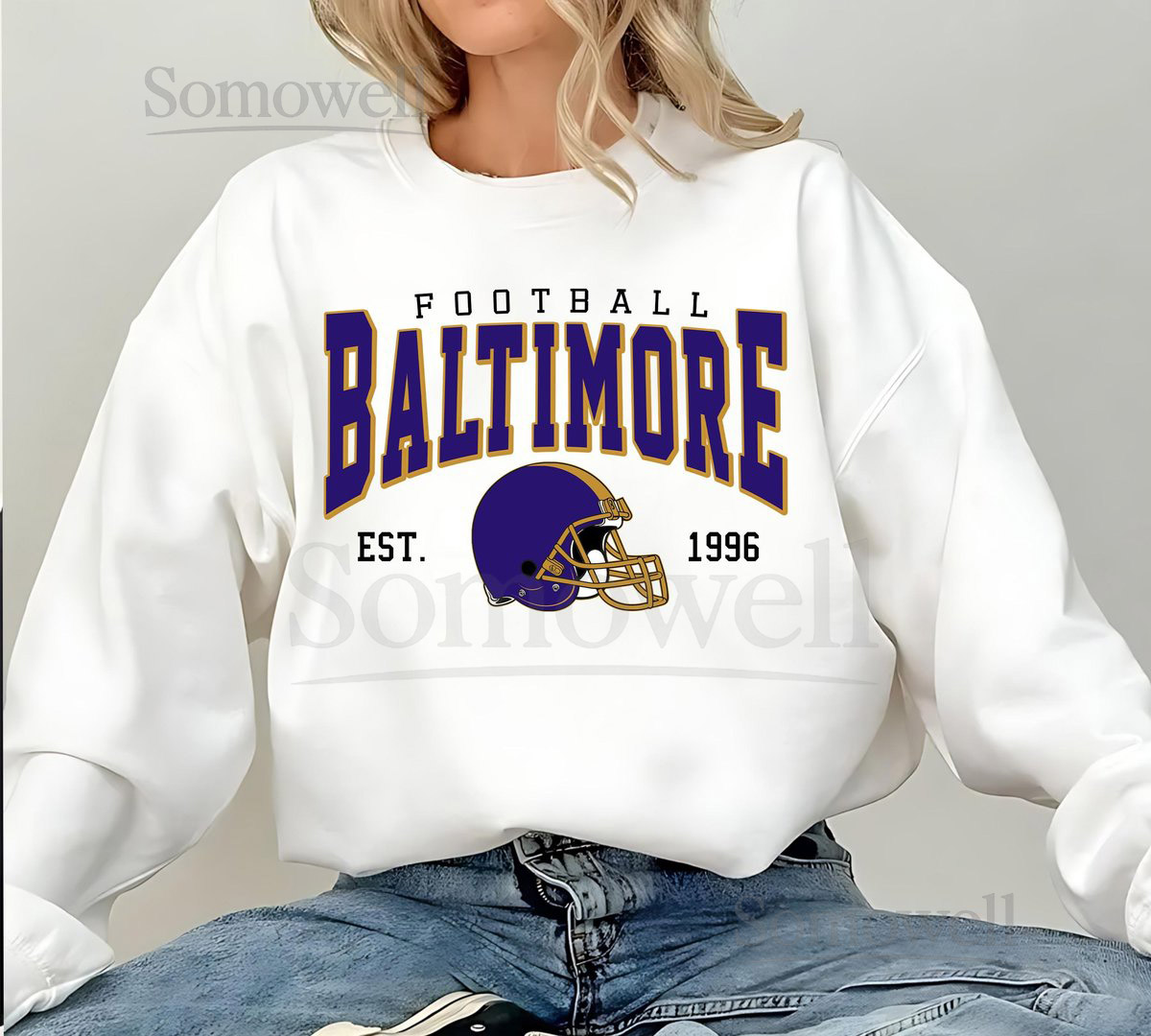 Baltimore Football Sweatshirt Ravens Crewneck Sweatshirt Game Day Hoodie Baltimore Fan Sweatshirt City Name Sports Shirt Baltimore Gift_69