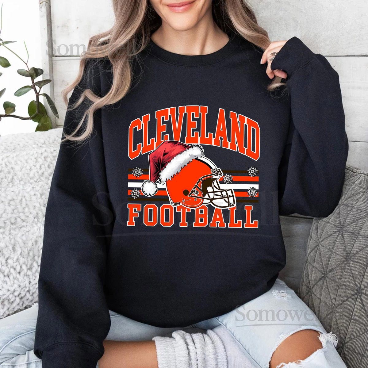 Cleveland Football Vintage T-Shirt Retro Sweatshirt Classic Hoodie with Santa Hat Christmas_19