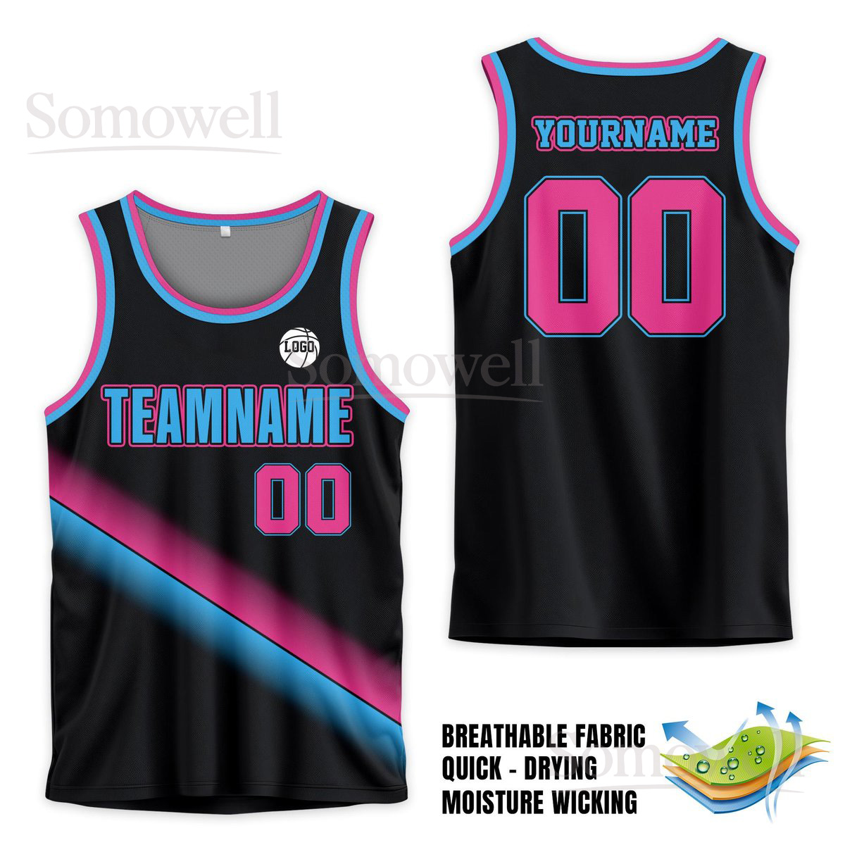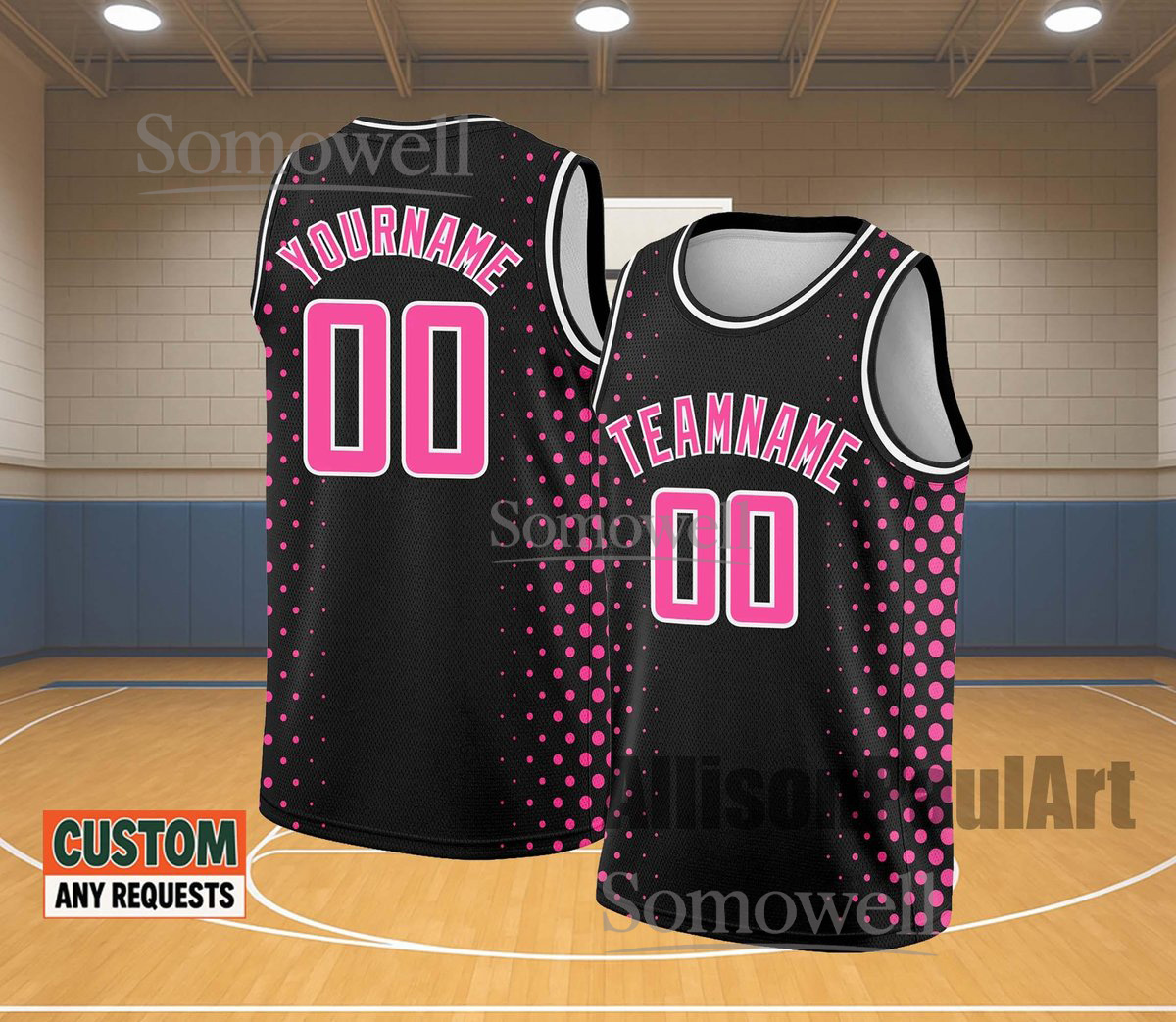 Custom Basketball Jersey Team Name Number Pink Gradient Edition Available in Multiple Colors