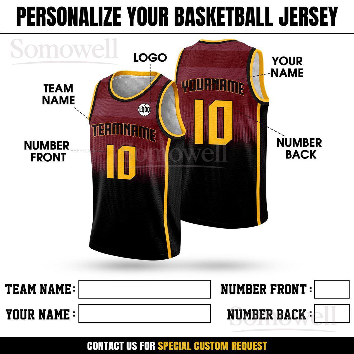 Custom Basketball Jersey Team Name Number Available in Red, Black, Green, Blue Colors