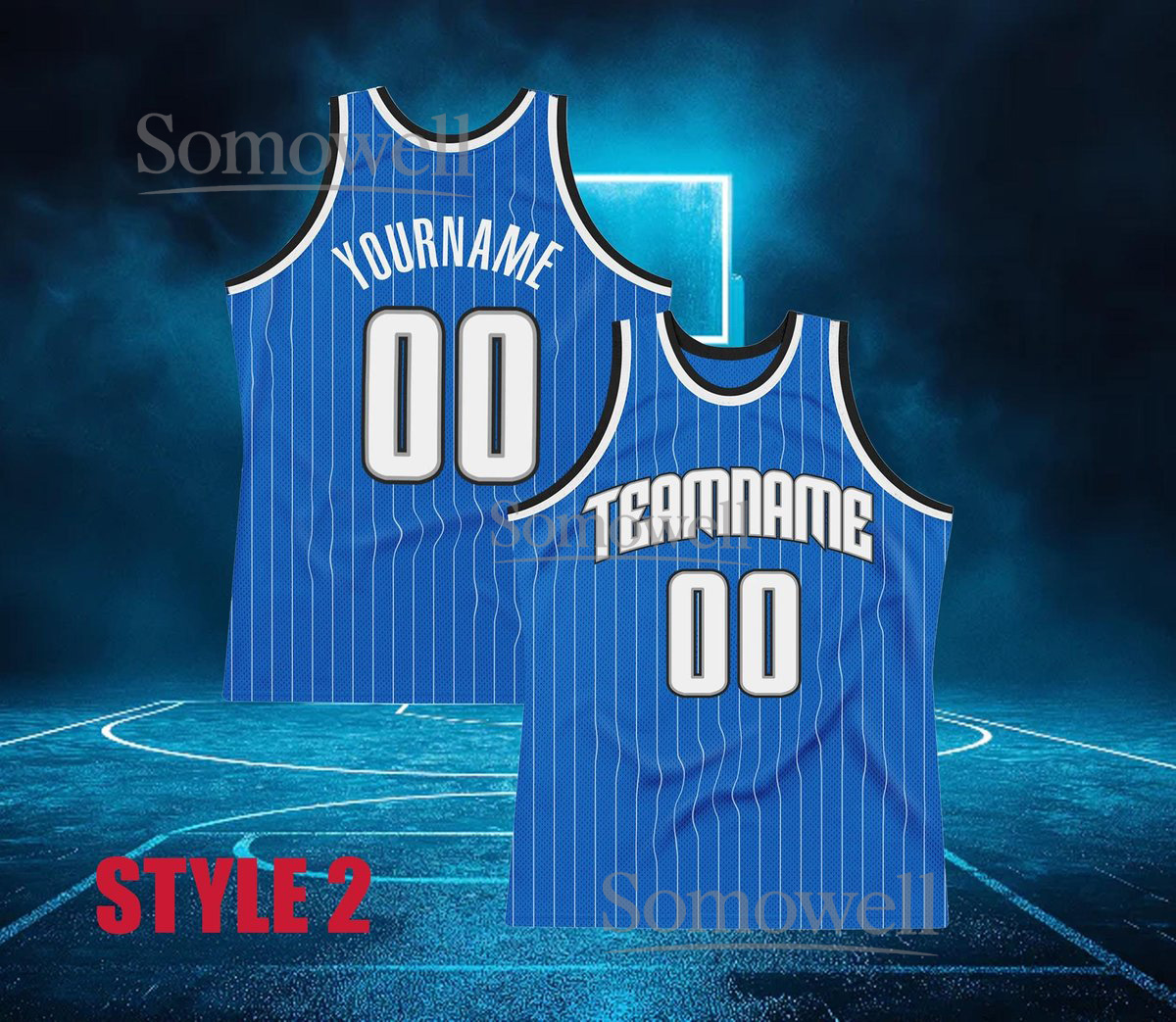 Custom Basketball Jersey White Blue Pinstripe Personalized Team Name Number Sleeveless Top