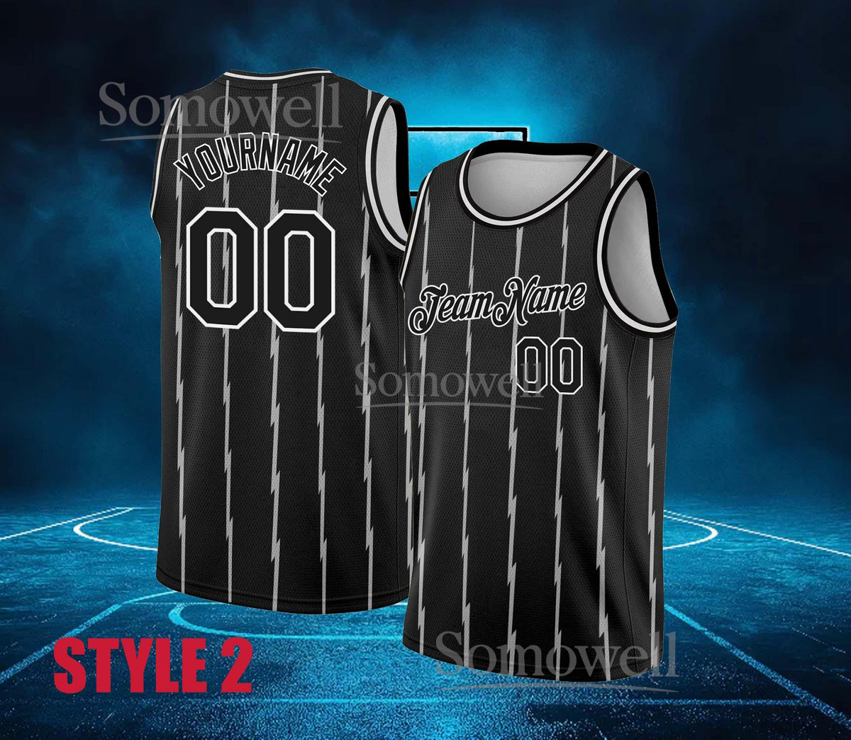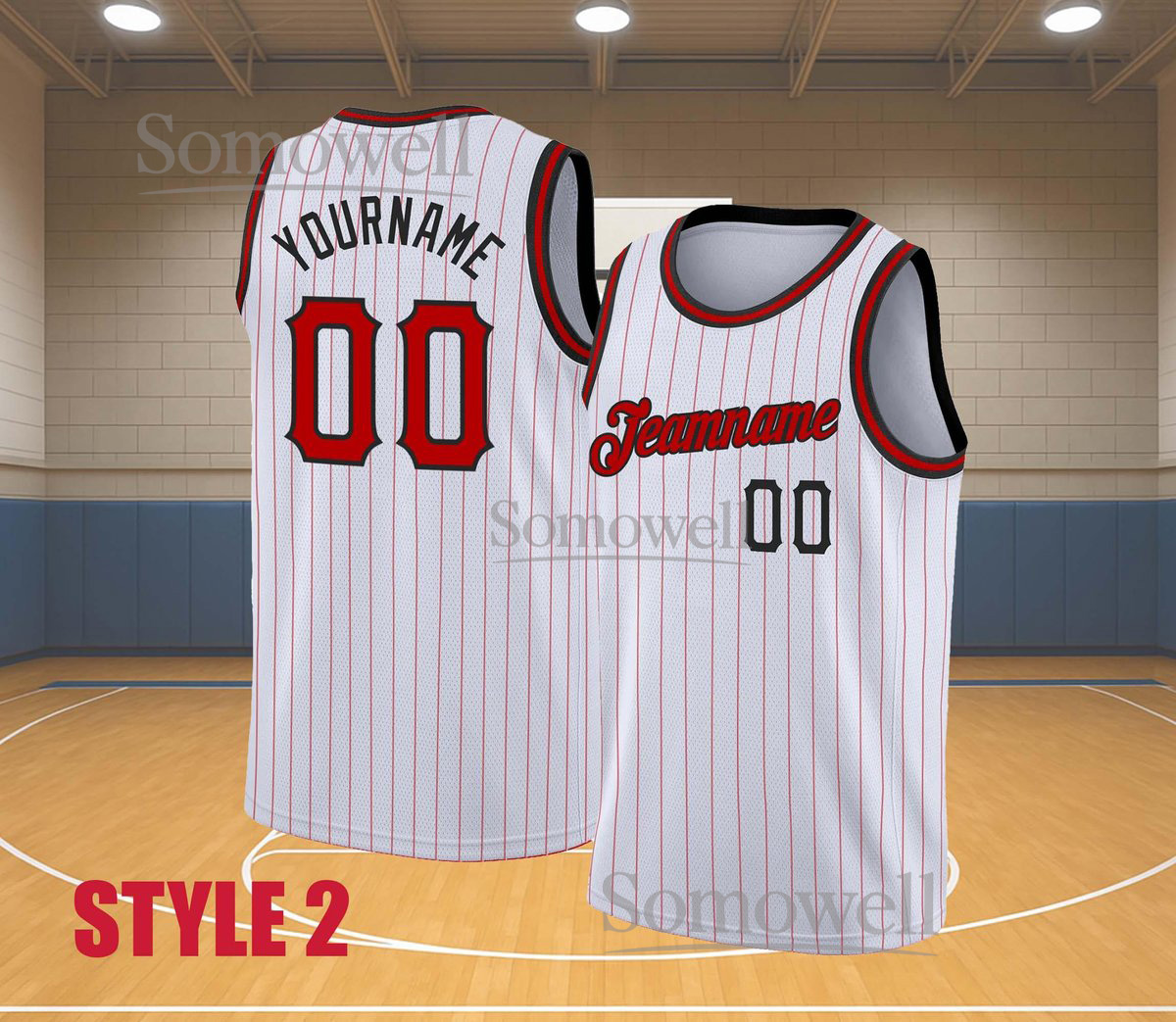Custom Basketball Jersey Team Name Number Black Pinstripe Red Edition Available in Multiple Colors