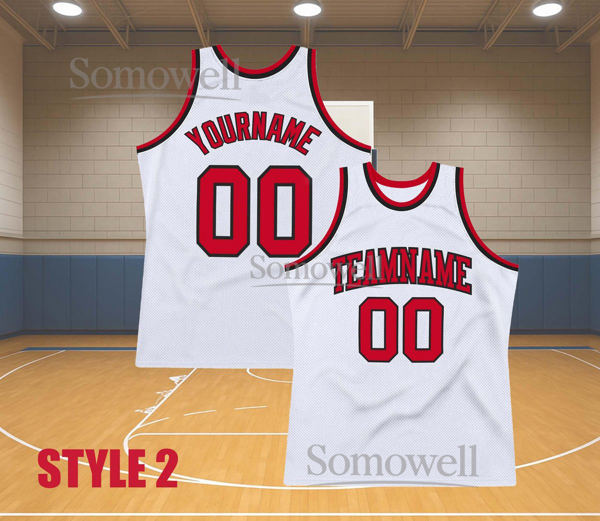Custom Basketball Jersey Red White Trim Personalized Team Name Number Sleeveless Top
