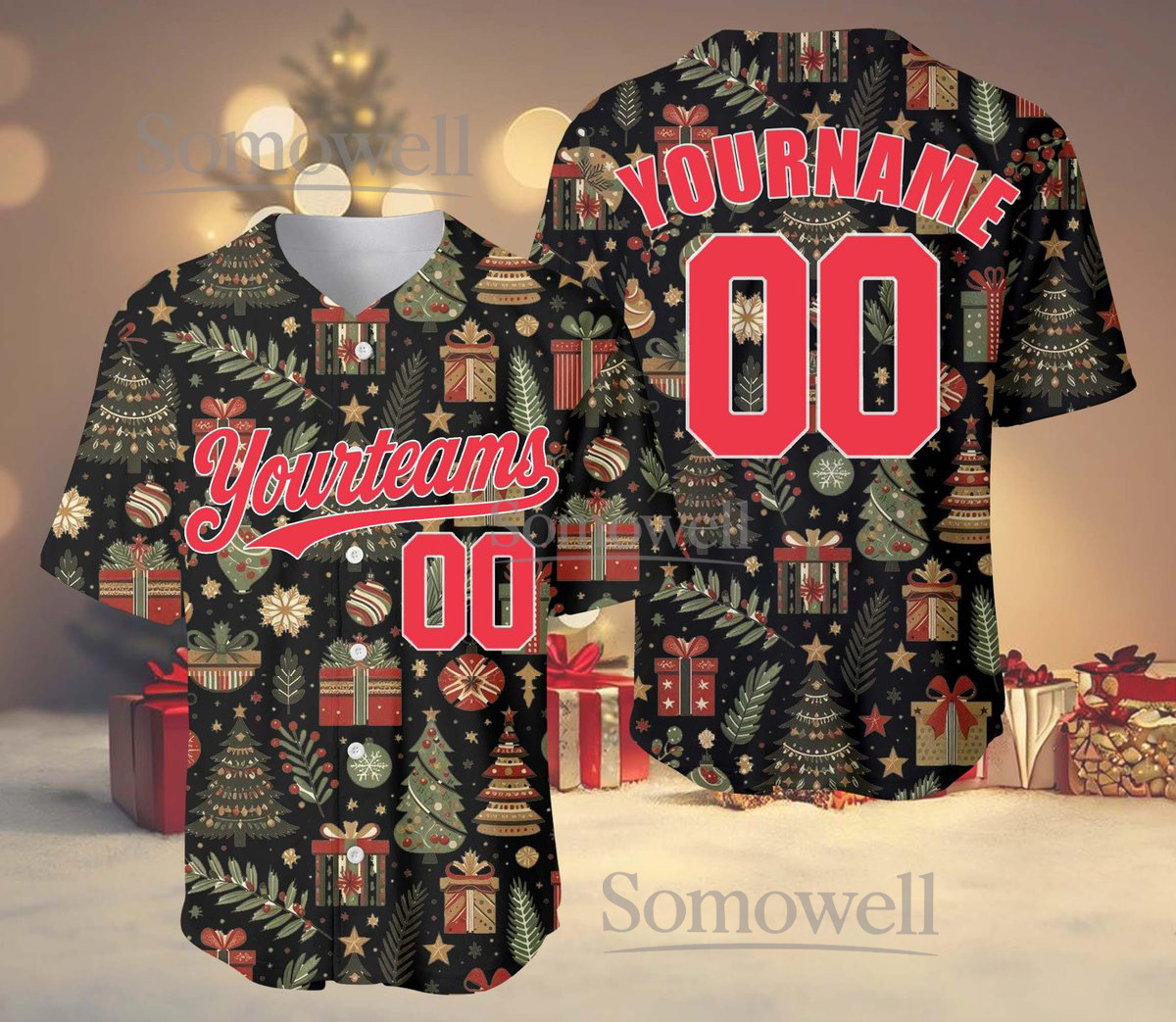 Personalized Christmas Baseball Jersey with Team Name, Number and Custom Name for Holidays