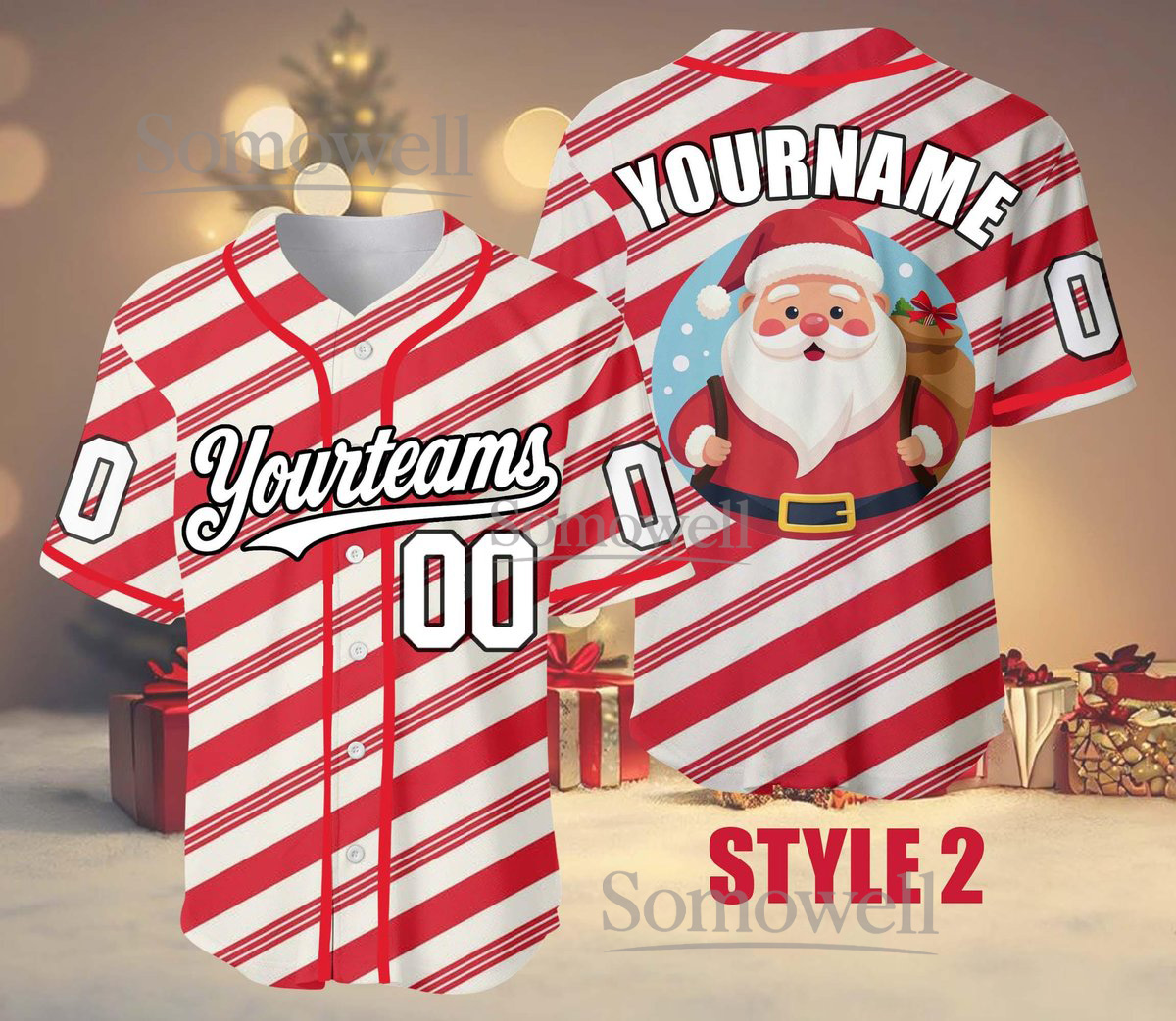 Personalized Christmas Baseball Jersey with Team Name, Number and Custom Name for Holiday Fun