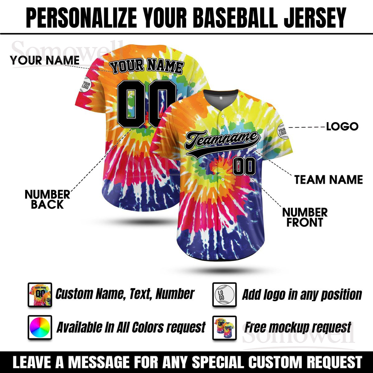 Personalized Colorful Baseball Jersey Custom Team Name and Number for Adults