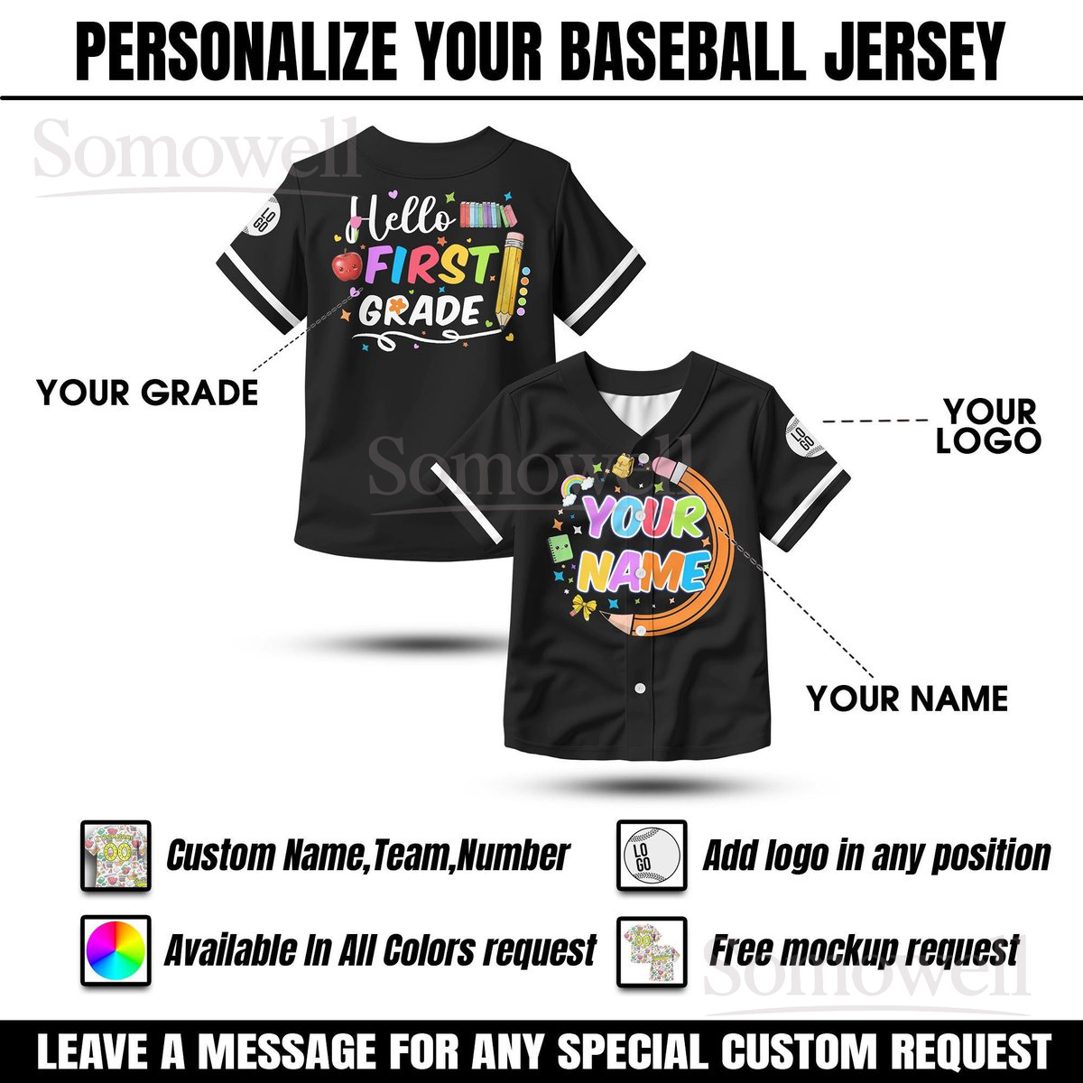 Personalized Cute Back To School Baseball Jersey for Kids Custom Student Name Shirt Multi Color Edition