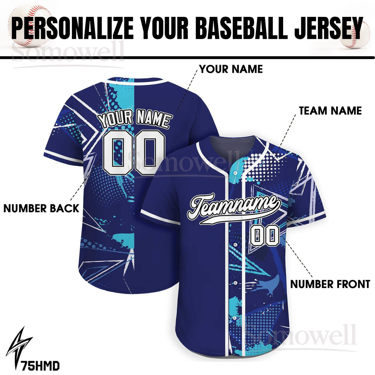 Personalized Baseball Jersey with Team Name and Number Blue Graffiti Multi-Color Sports Shirt
