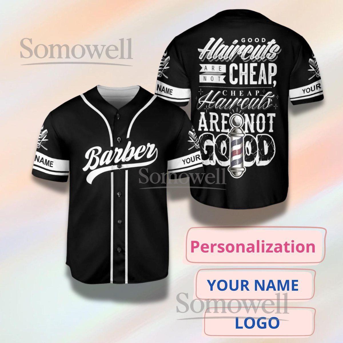 Personalized Barber Baseball Jersey Shirt Good Haircuts Quote Barbershop Gift