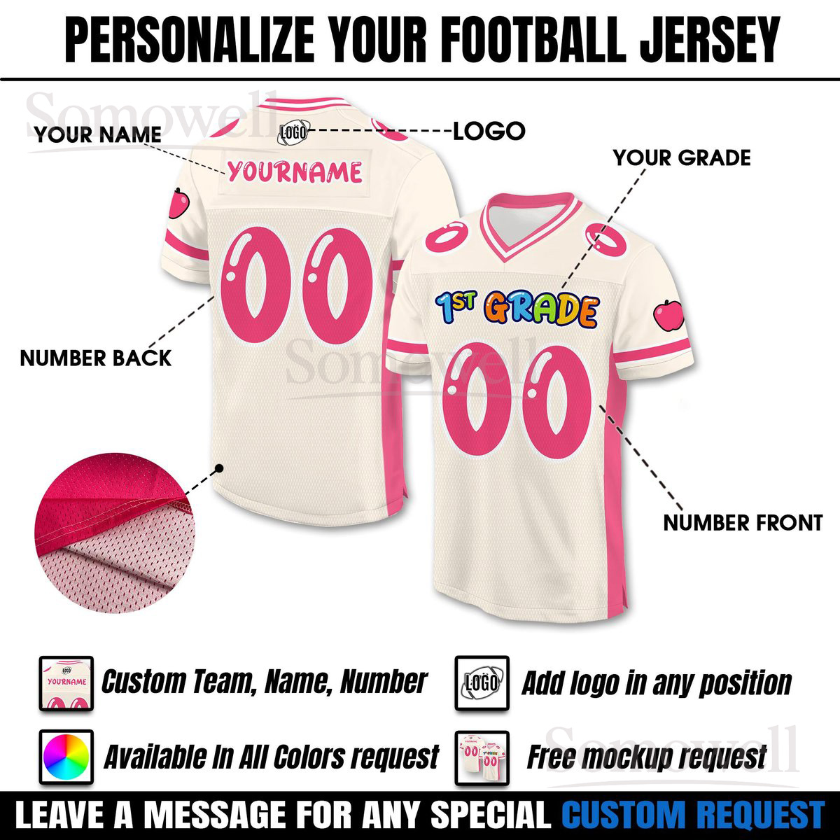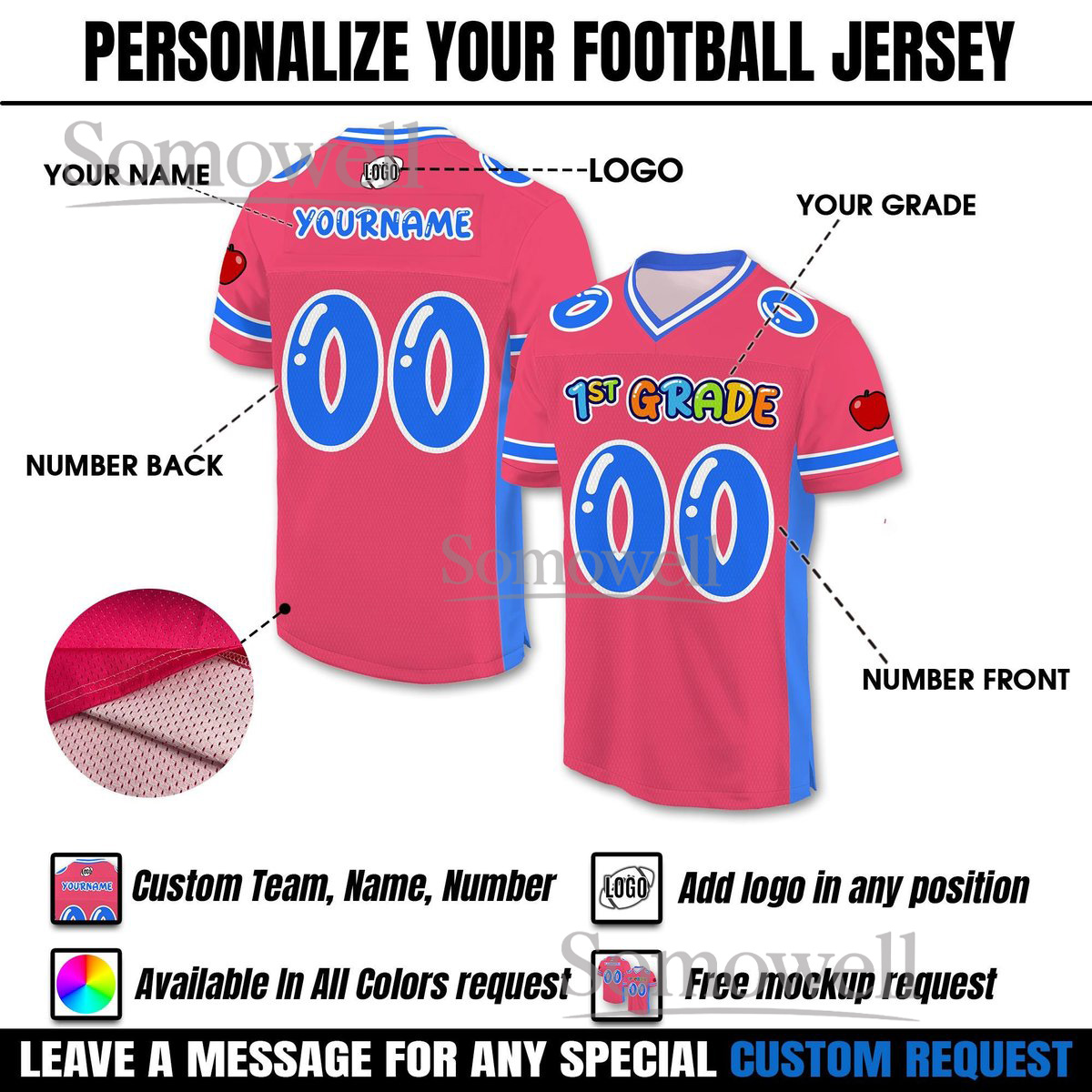Personalized Back To School Football Jersey for Kids Custom Name First Grade Shirt Multi Color Edition