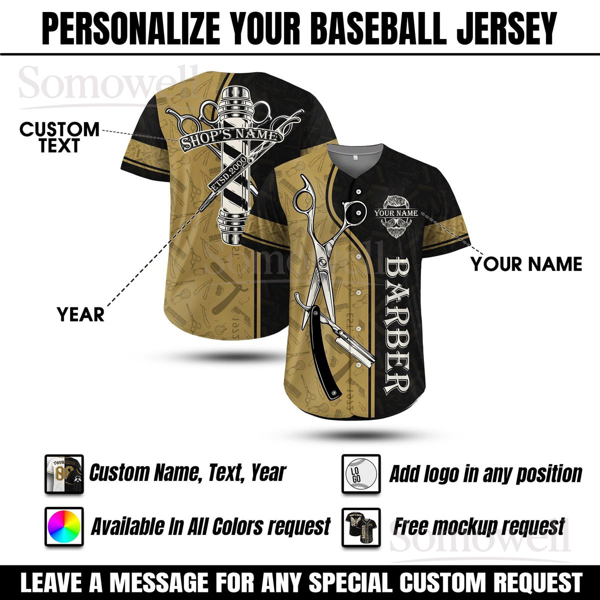 Personalized Barber Baseball Jersey Custom Shop Name Scissor Print Uniform for Men Women and Kids