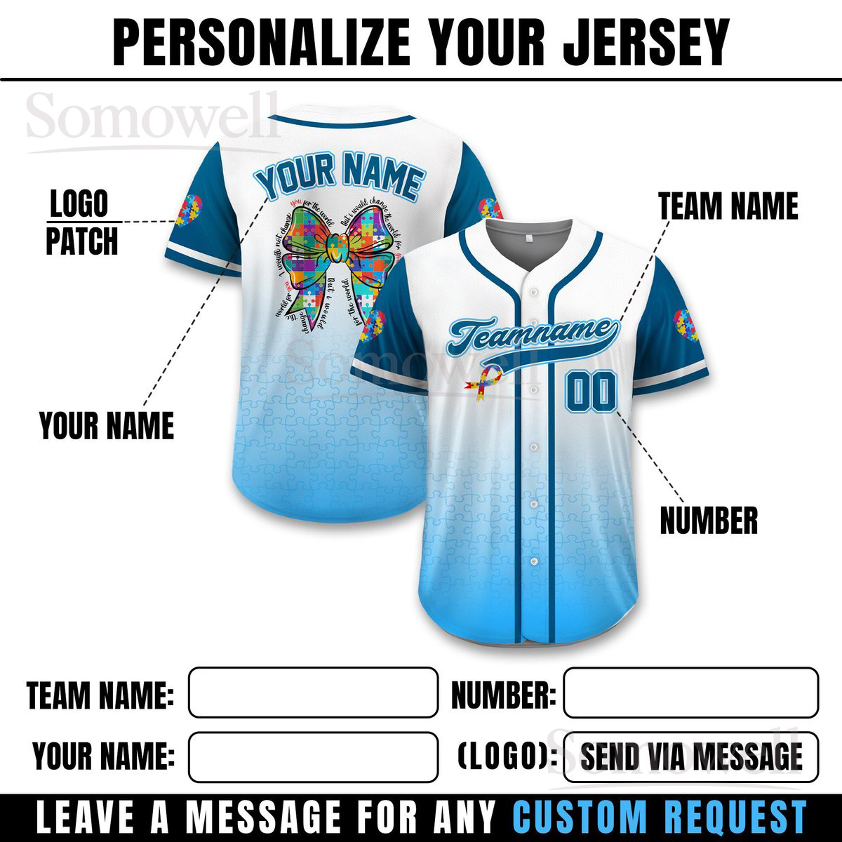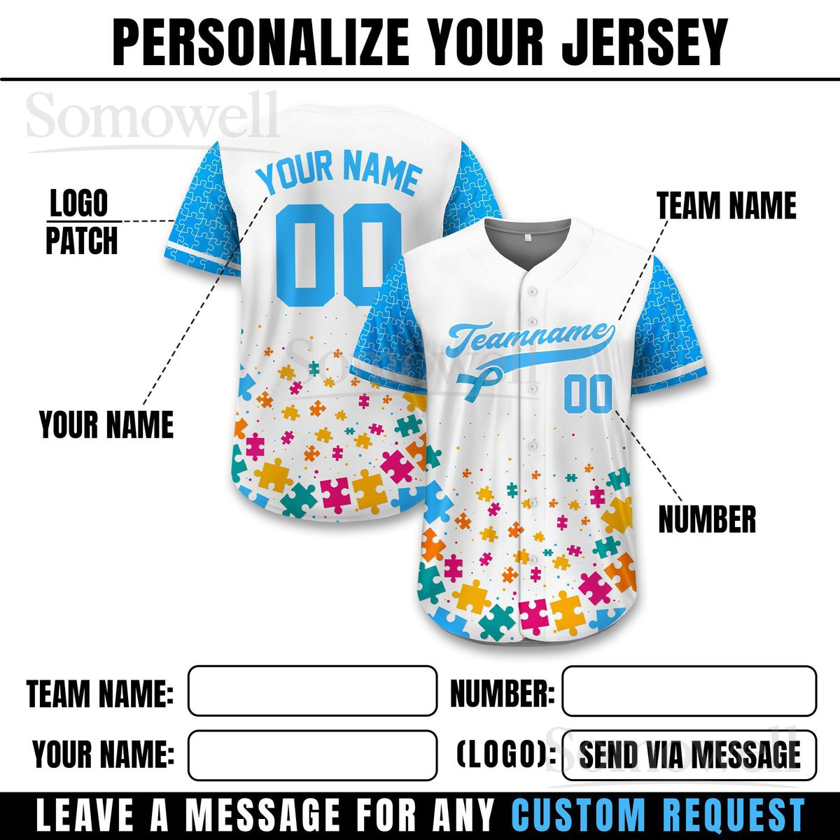 Personalized Autism Awareness Baseball Jersey Many Colors Custom Puzzle Pattern Team Shirt