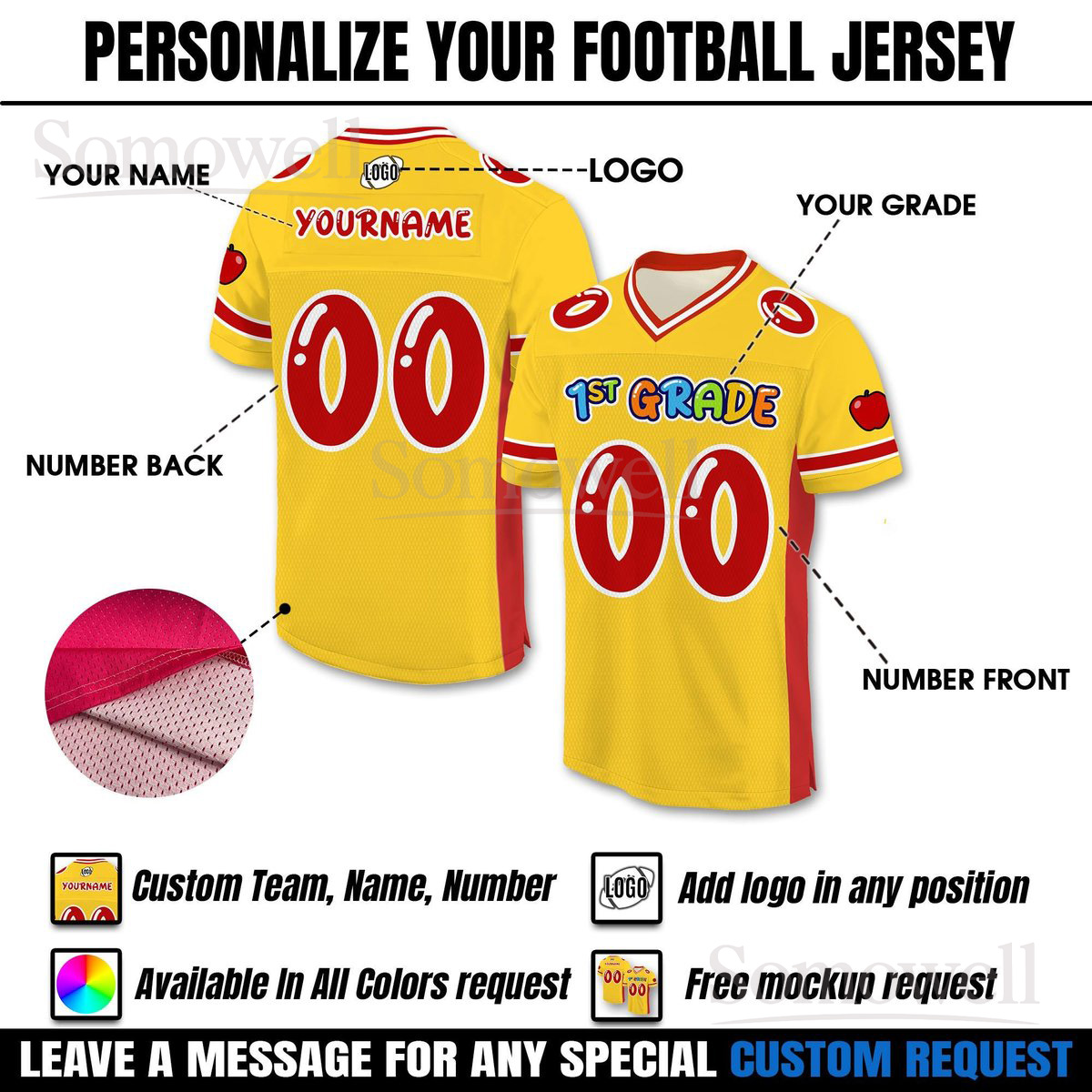 Personalized Back To School Football Jersey 1st Grade Design Custom Name and Number Edition for Kids