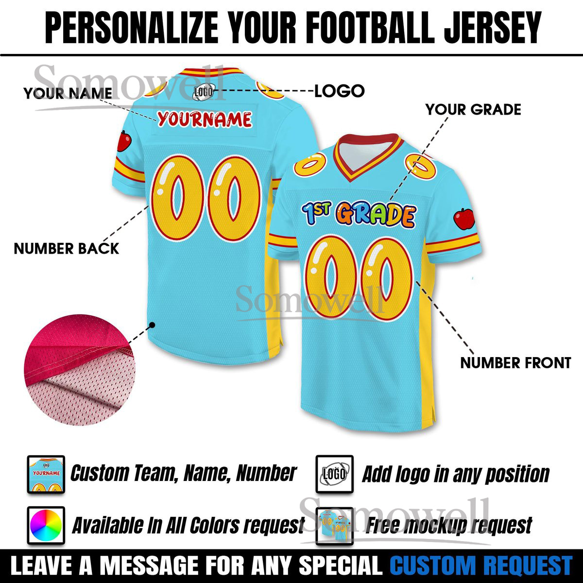 Personalized Back To School Football Jersey for Kids Custom 1st Grade Student Shirt Multi Color Edition