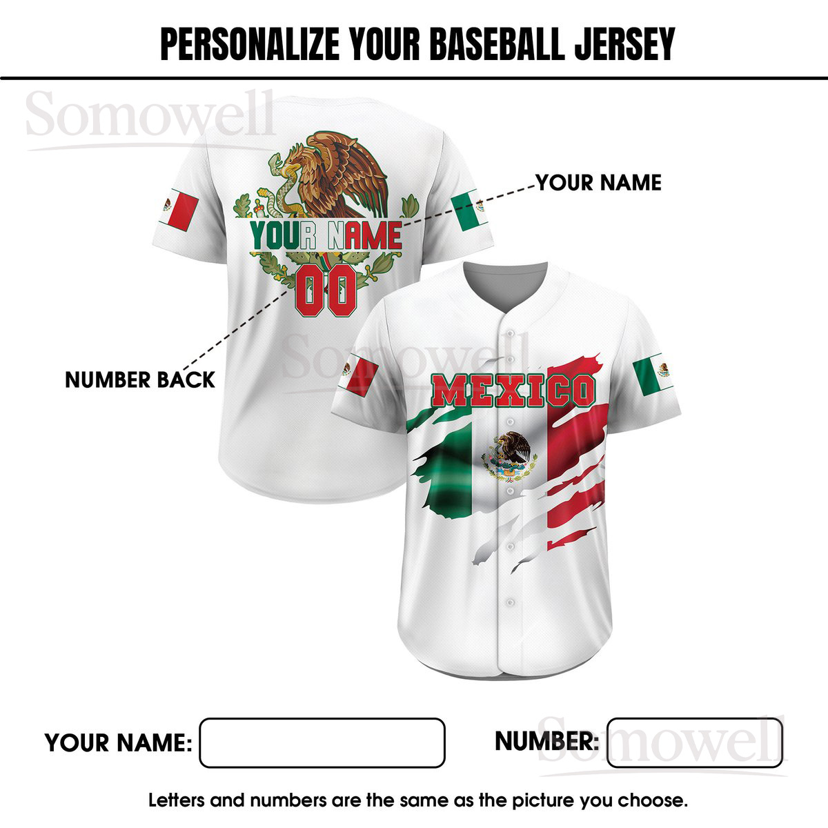Personalization Baseball Jersey Mexico Flag Edition Custom Name Number National Pride Outfit Multi Color Edition