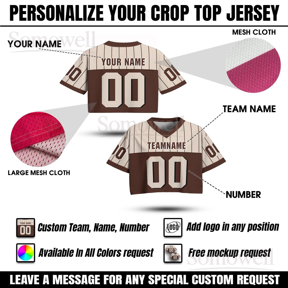 Personalize Womens Pinstripe Cropped Football Jersey Many Colors Custom Name Number Sportswear