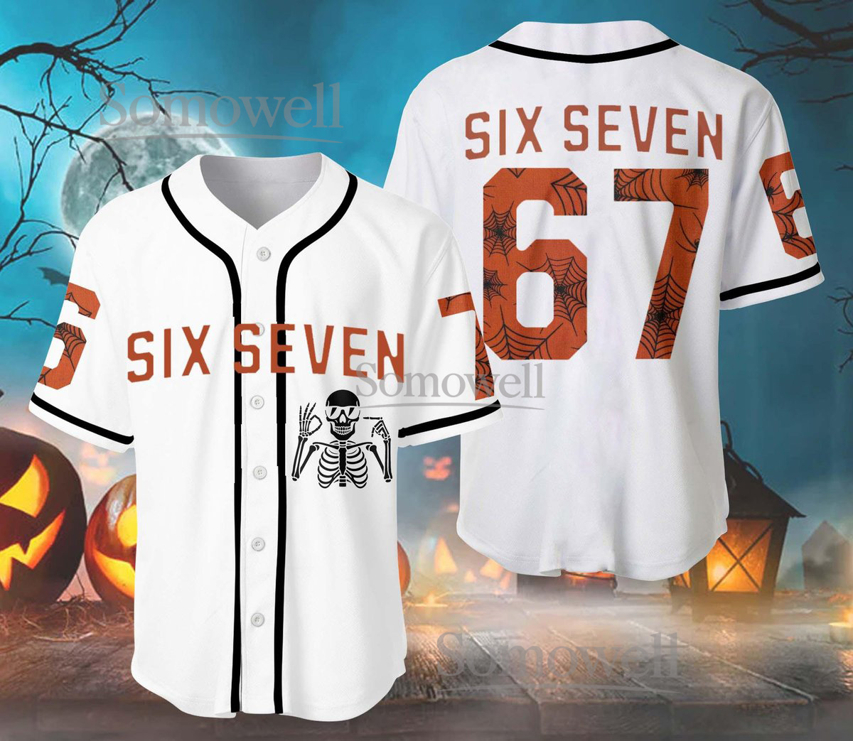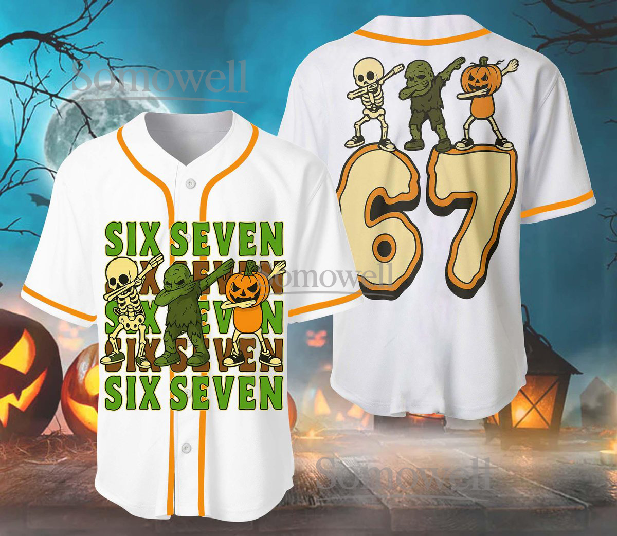 Six Seven Halloween Baseball Jersey Skeleton Pumpkin Dabbing Edition Available in Multiple Colors