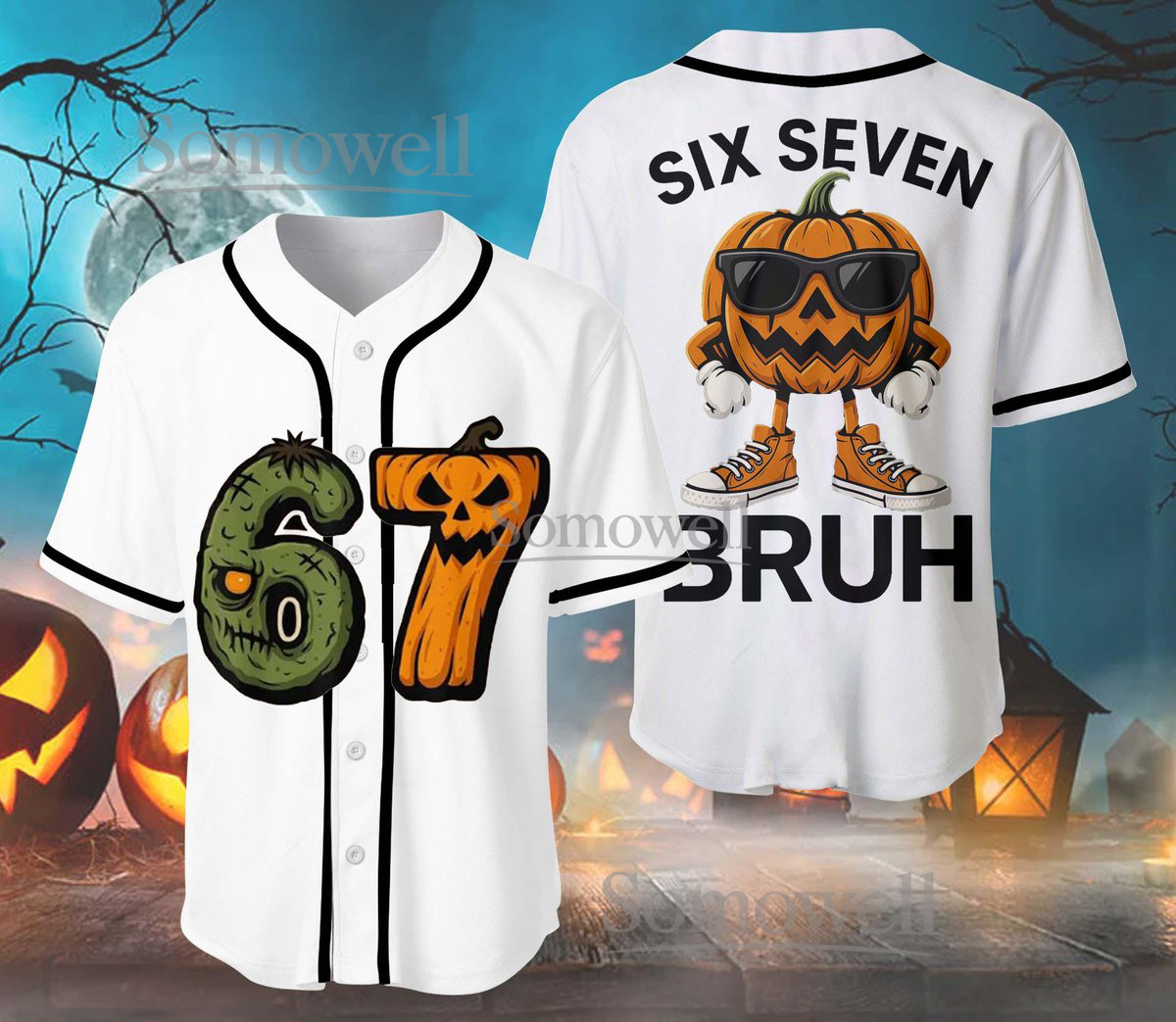 Six Seven Halloween Baseball Jersey Pumpkin Bruh Edition Available in Multiple Colors