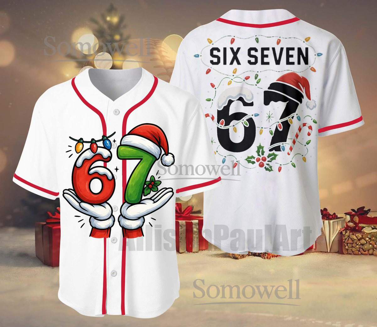 Six Seven Christmas Baseball Jersey Santa Lights Edition Available in Multiple Colors