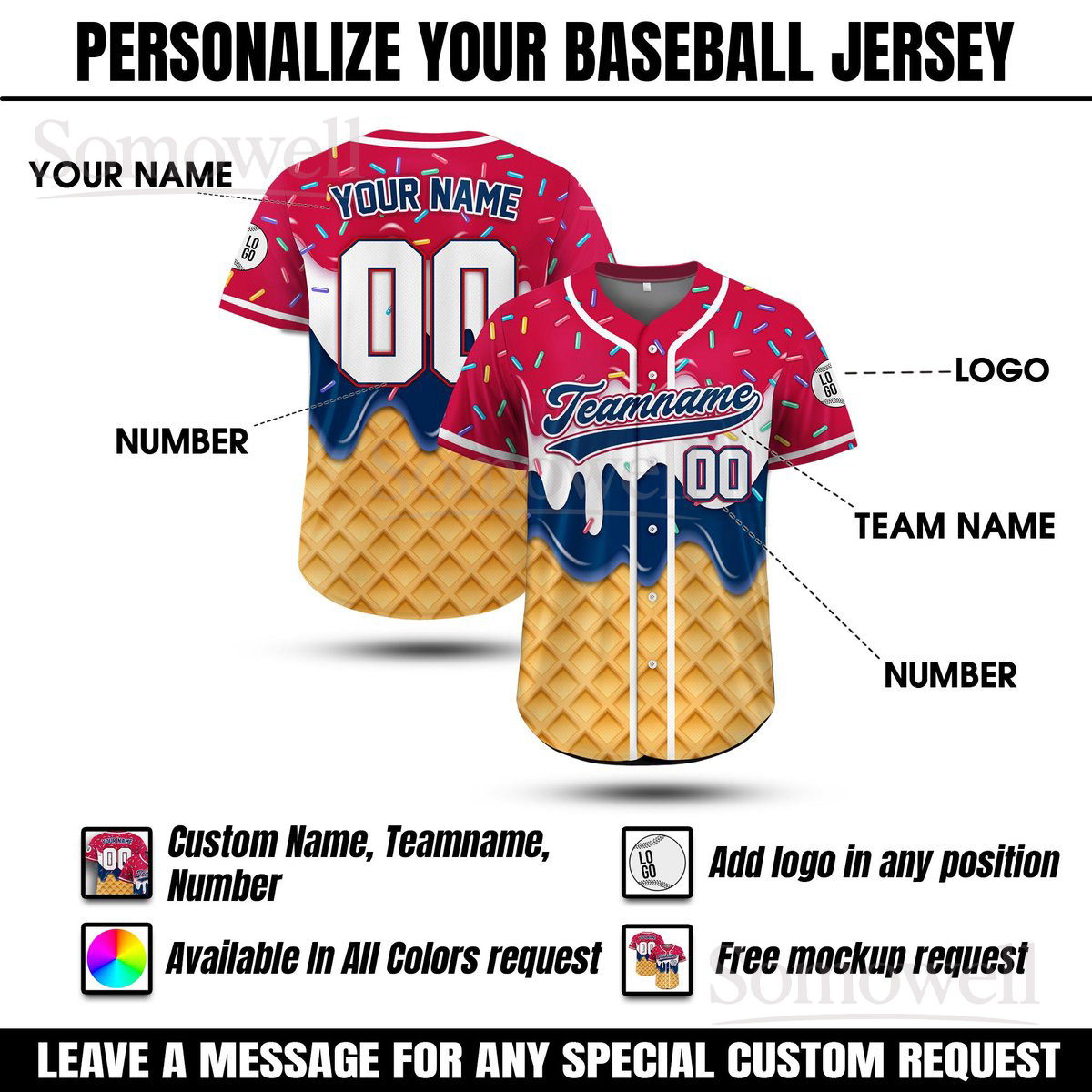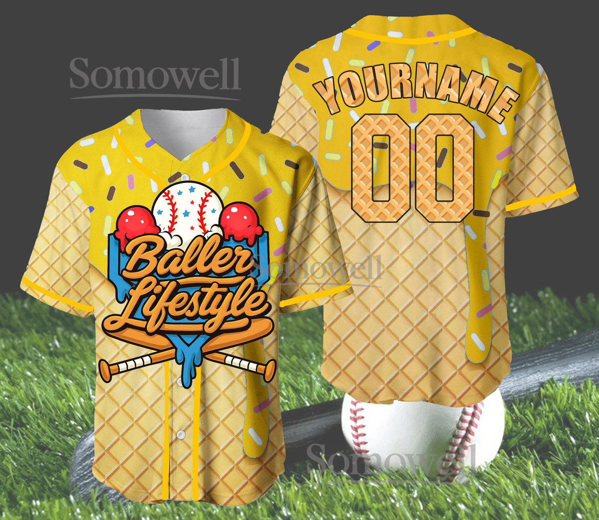 Custom Baller Lifestyle Ice Cream Baseball Jersey Shirt Personalized Summer Gift