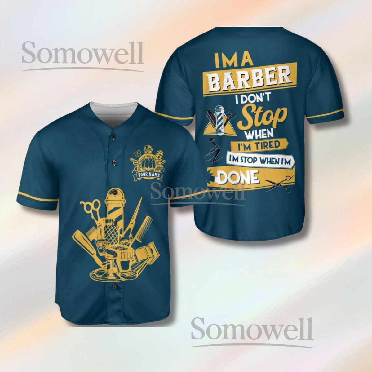 Custom Barber Baseball Jersey Shirt Personalized Barbershop Uniform Hairstylist Gift