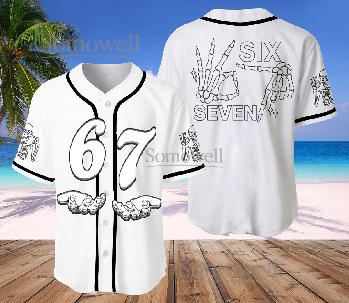 Six Seven Baseball Jersey Skeleton Hands Black White Edition Available in Multiple Colors