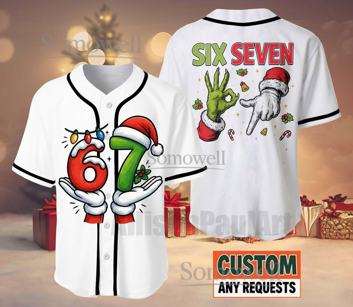 Six Seven Christmas Baseball Jersey Grinch Hand Edition Available in Multiple Colors