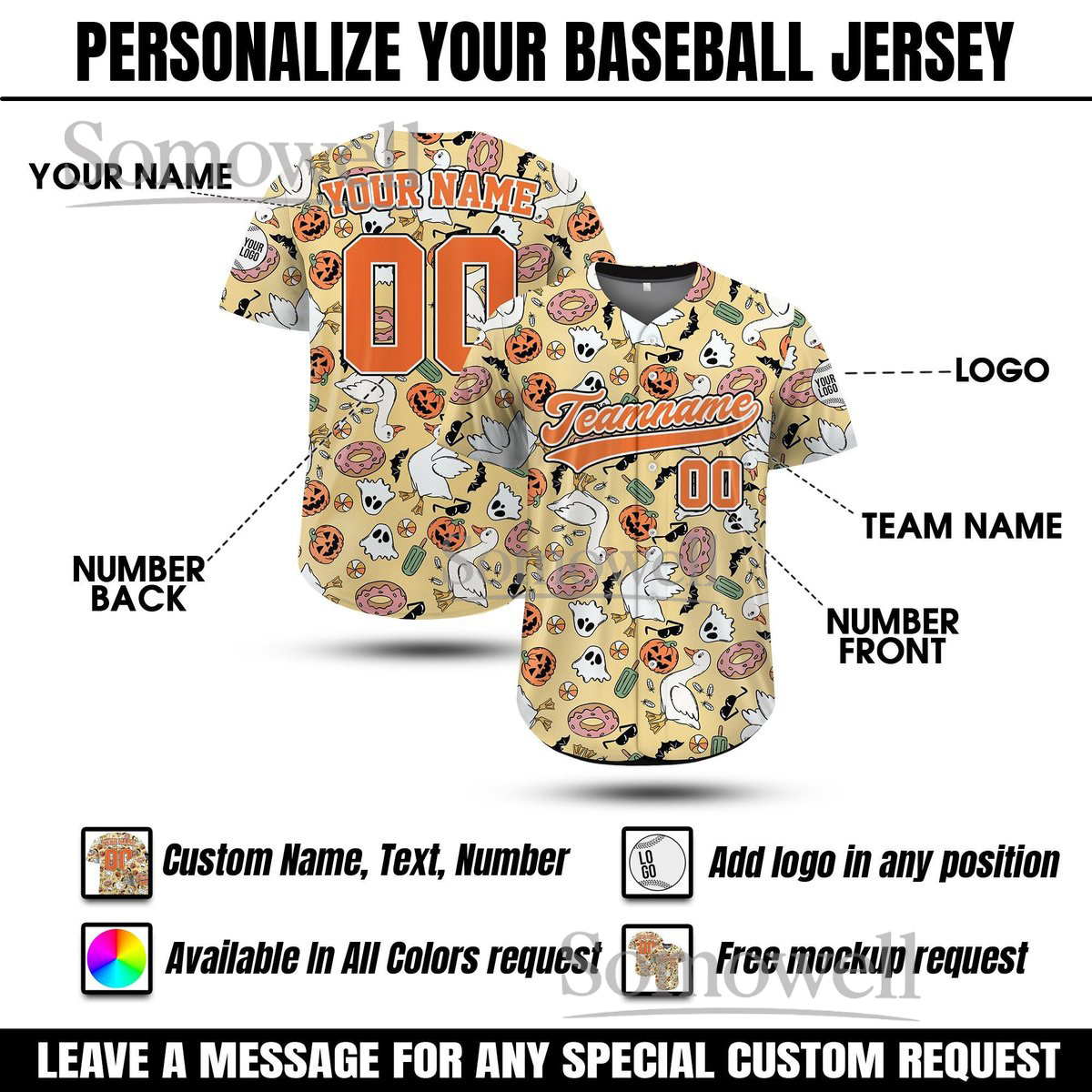 Custom Summer Halloween Hawaiian Baseball Jersey Personalized Name and Number for Men Women Youth and Kids