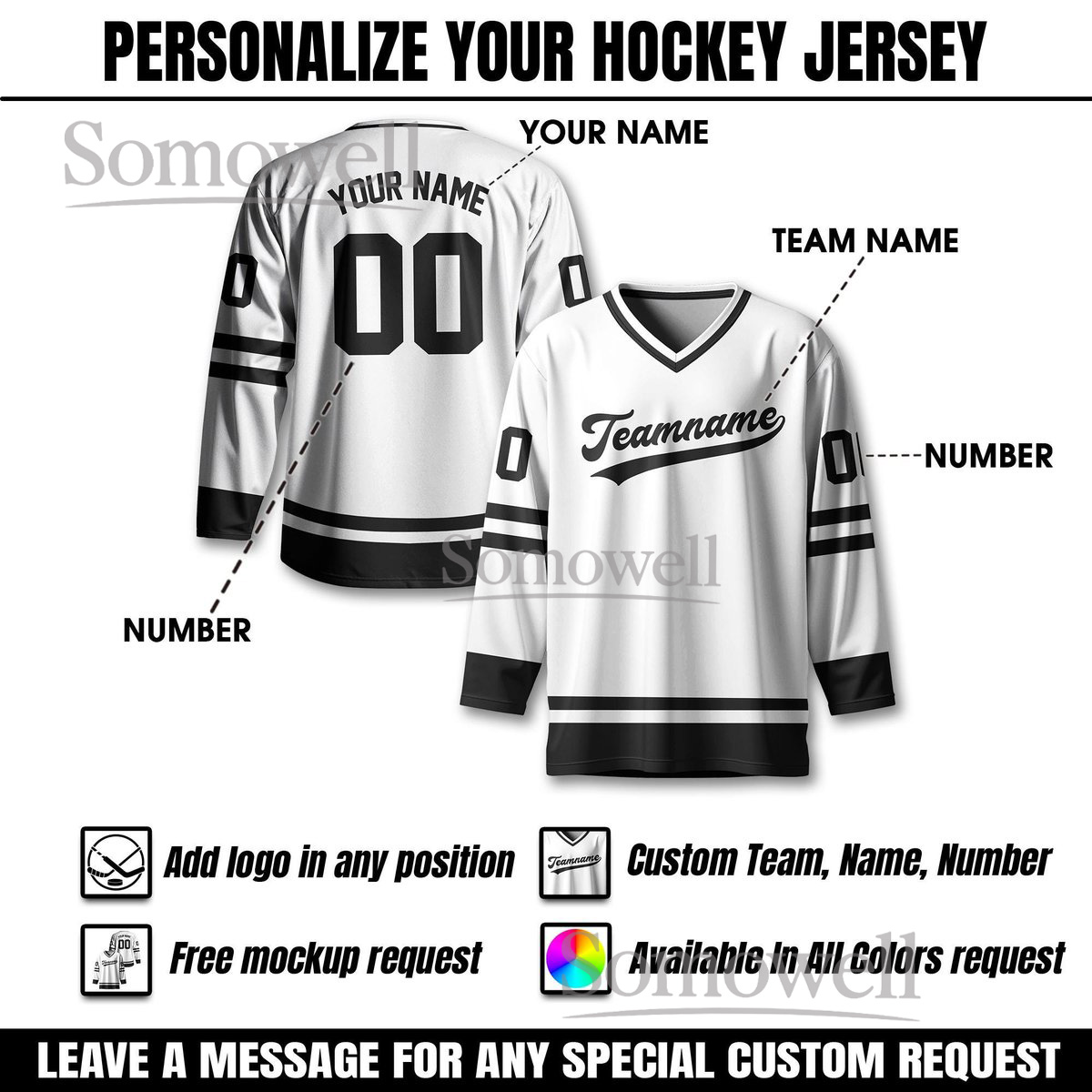 Custom Team Name Number And Logo Hockey Jersey for Men and Women in Various Colors