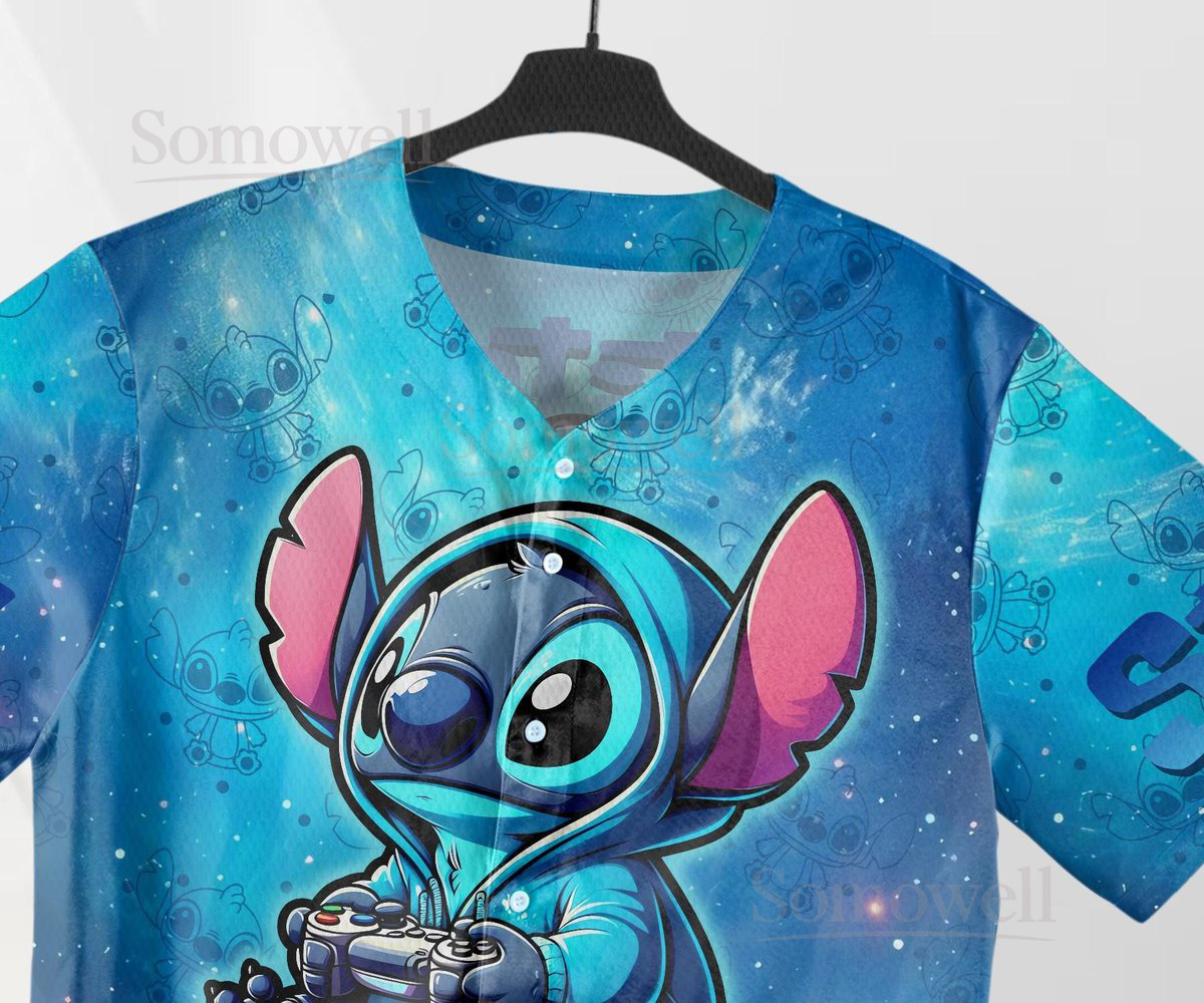 Custom Stitch Baseball Jersey Cute Stitch Design, Personalized for Birthday Gift with Team Name and Number
