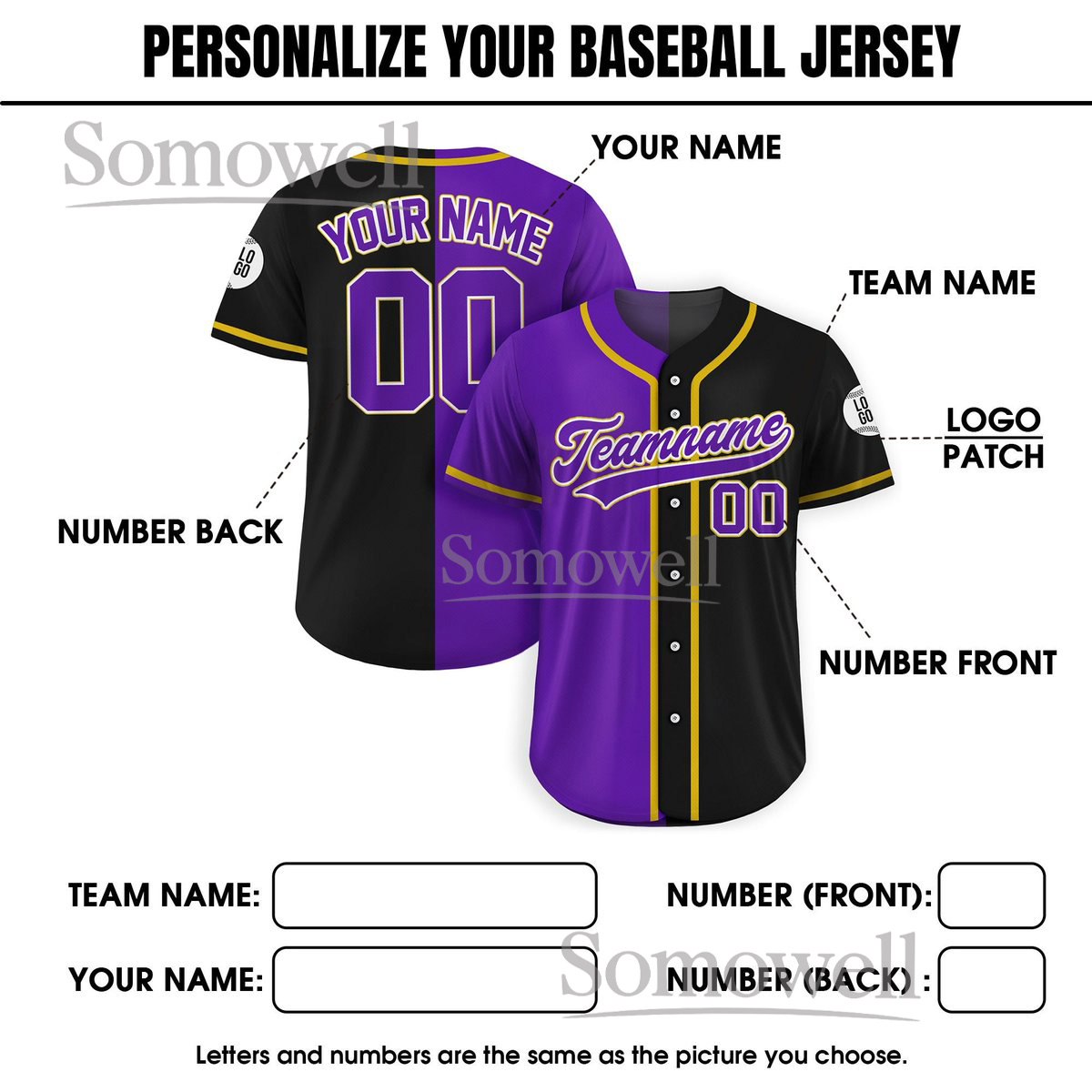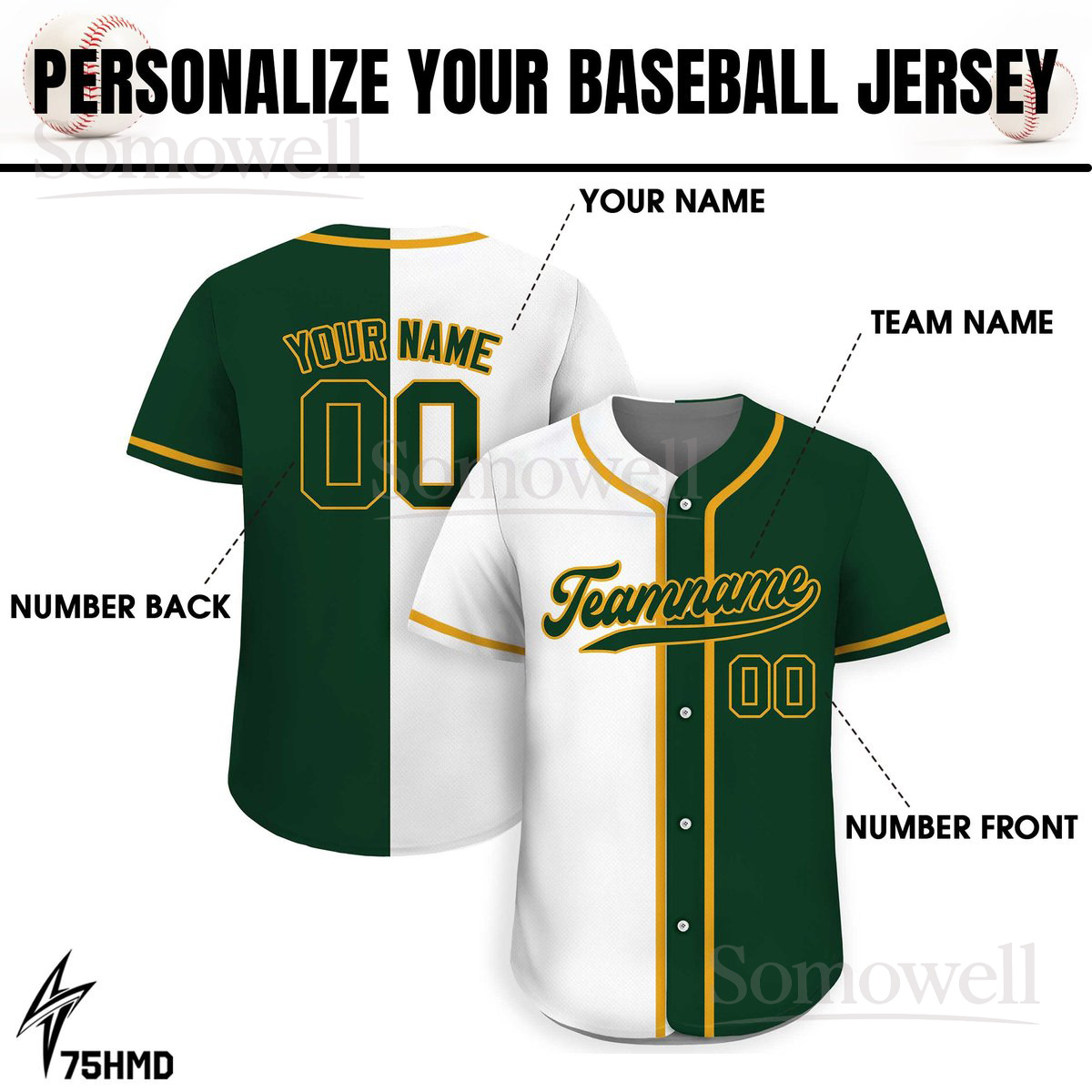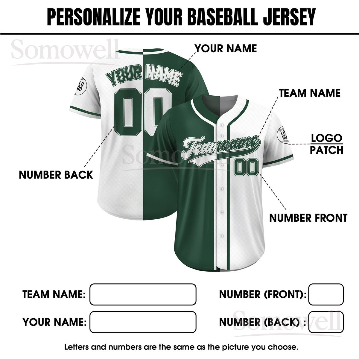Custom Split Color Baseball Jersey Personalized Team Name and Number Two Tone Design Sports Uniform for Men Women Youth Multi Color Edition