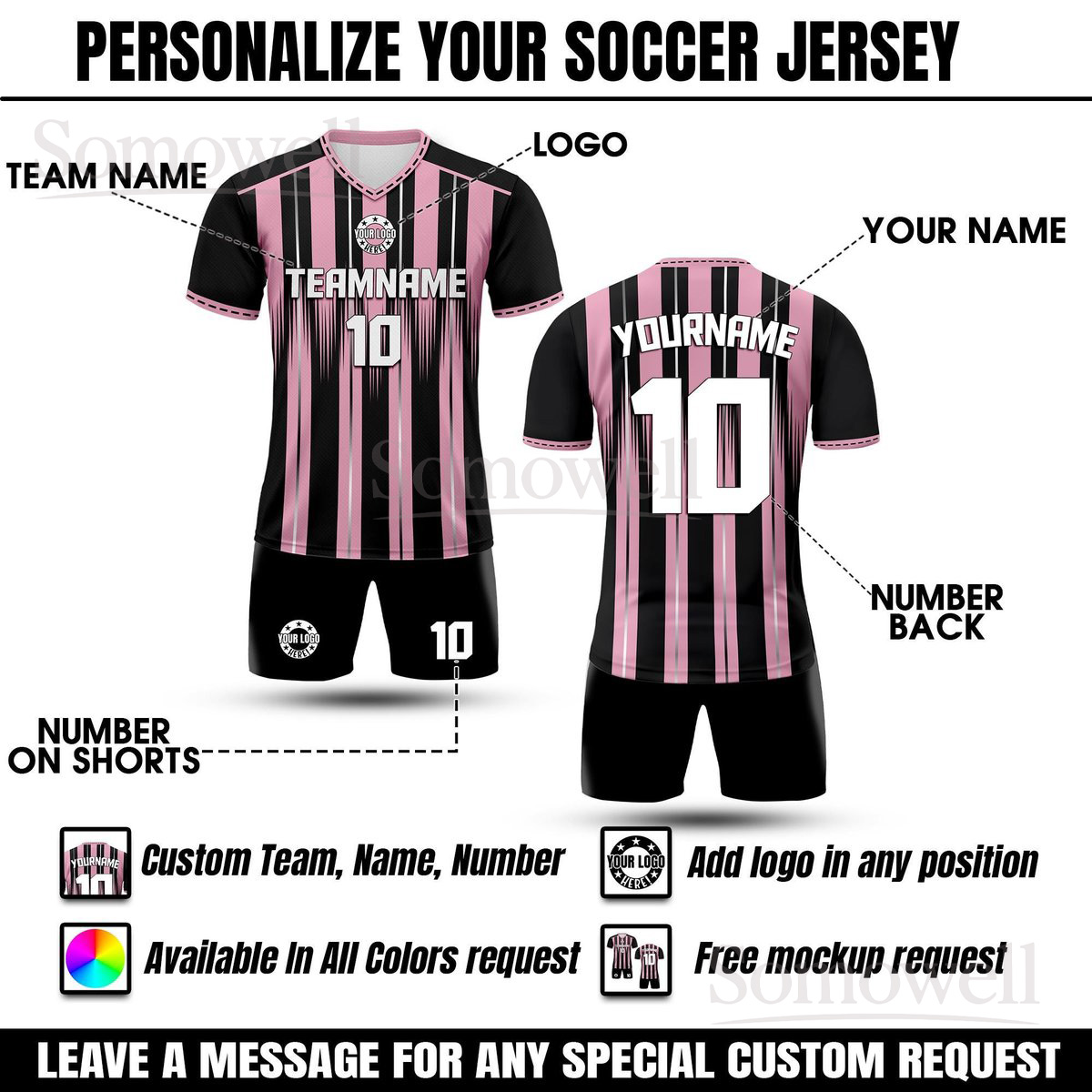 Custom Soccer Jersey Vertical Stripes Design Personalized Team Logo Name and Number Edition for All Ages