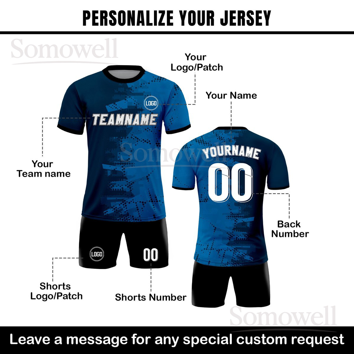 Custom Soccer Jersey Modern Pixel Pattern Personalized Team Logo Name and Number Edition