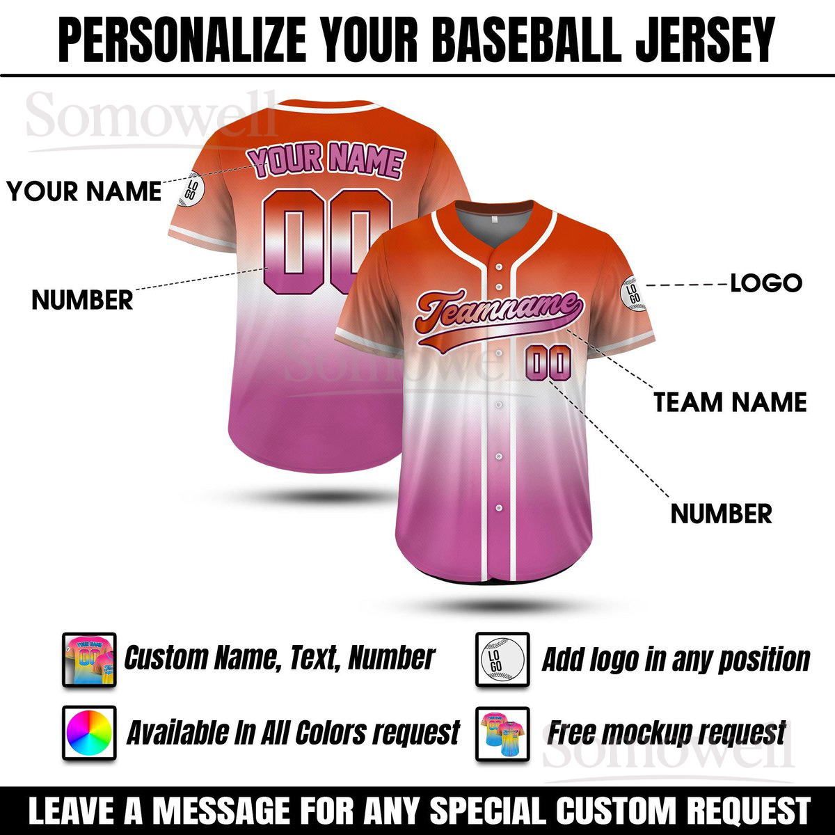 Custom Pride Baseball Jersey LGBTQ Baseball Jersey with Team Name and Number Multi Color Edition