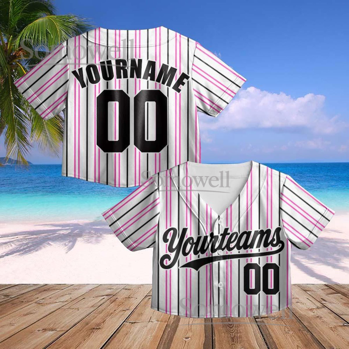 Custom Pinstripe Crop Baseball Jersey Team Name Number Classic Striped Edition Available in Multiple Colors